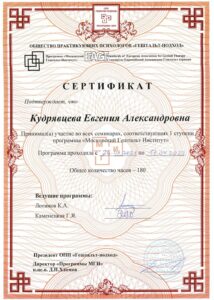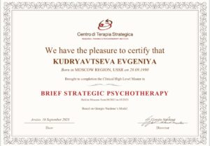 Я - Евгения, дипломированный практикующий психолог, гештальт-терапевт, краткосрочный стратегический терапевт.