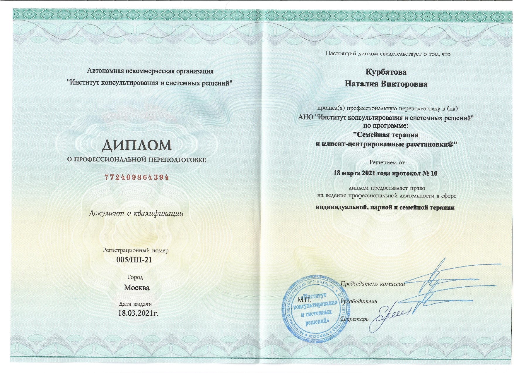 Принимает очно (город приёма):Санкт-Петербург