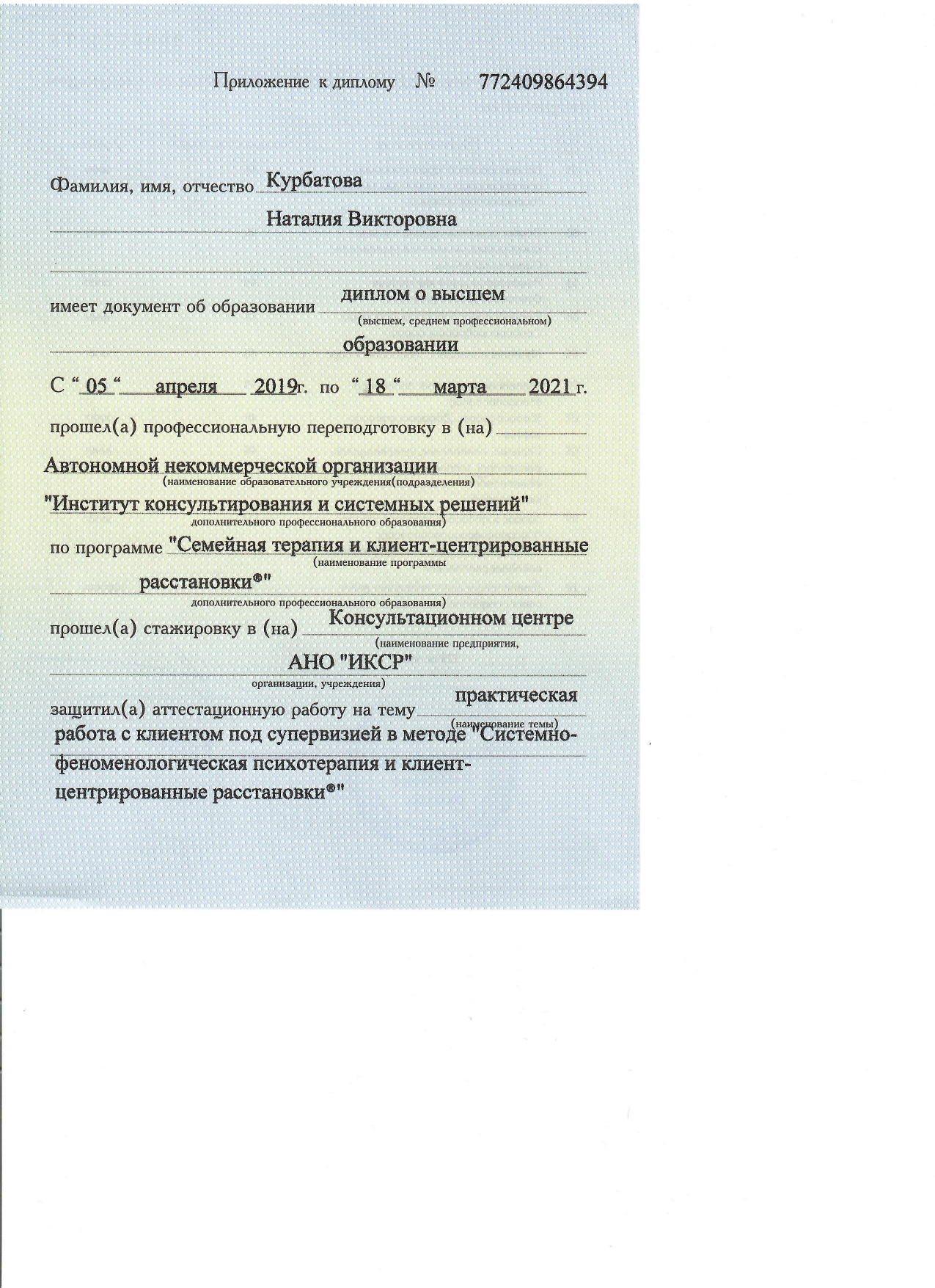 Хороший опыт личных изменений и сопровождения в изменениях других, опыт в бизнесе (более 20 лет) и в спорте (конный спорт, 15 лет).
