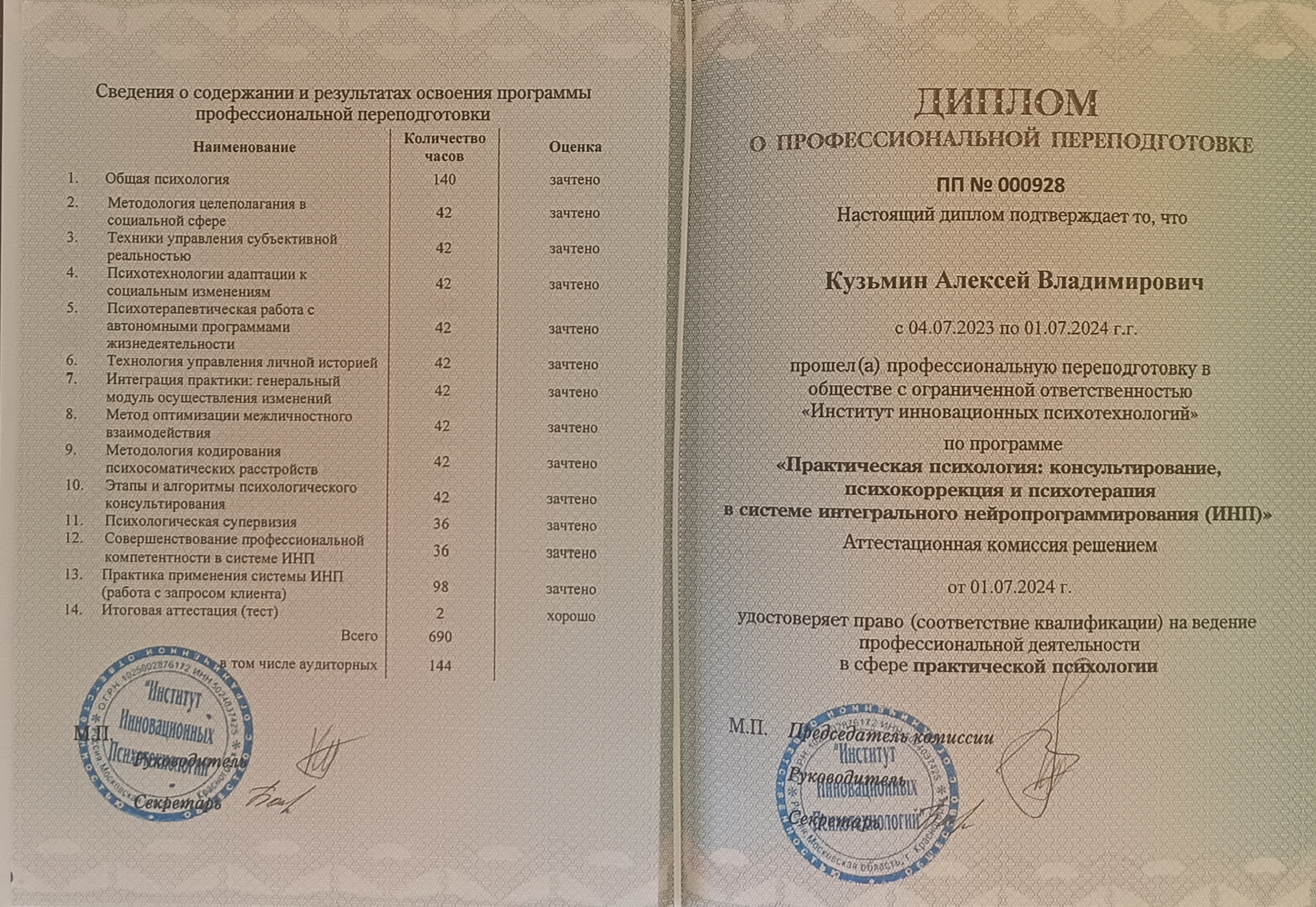 Здравствуйте ,меня зовут Алексей я практикующий психолог и консультант. Работаю по методу краткосрочной терапии.