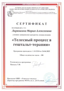 Более 3-х лет я регулярно прохожу личную терапию, чтобы лучше понимать себя, свои реакции и быть максимально полезной и экологичной в работе со своими клиентами. Кроме того, я посещаю индивидуальные и групповые супервизии, где разбираю сложные случаи с коллегами и опытными наставниками, что помогает мне поддерживать высокий уровень профессионализма и этичности в работе.