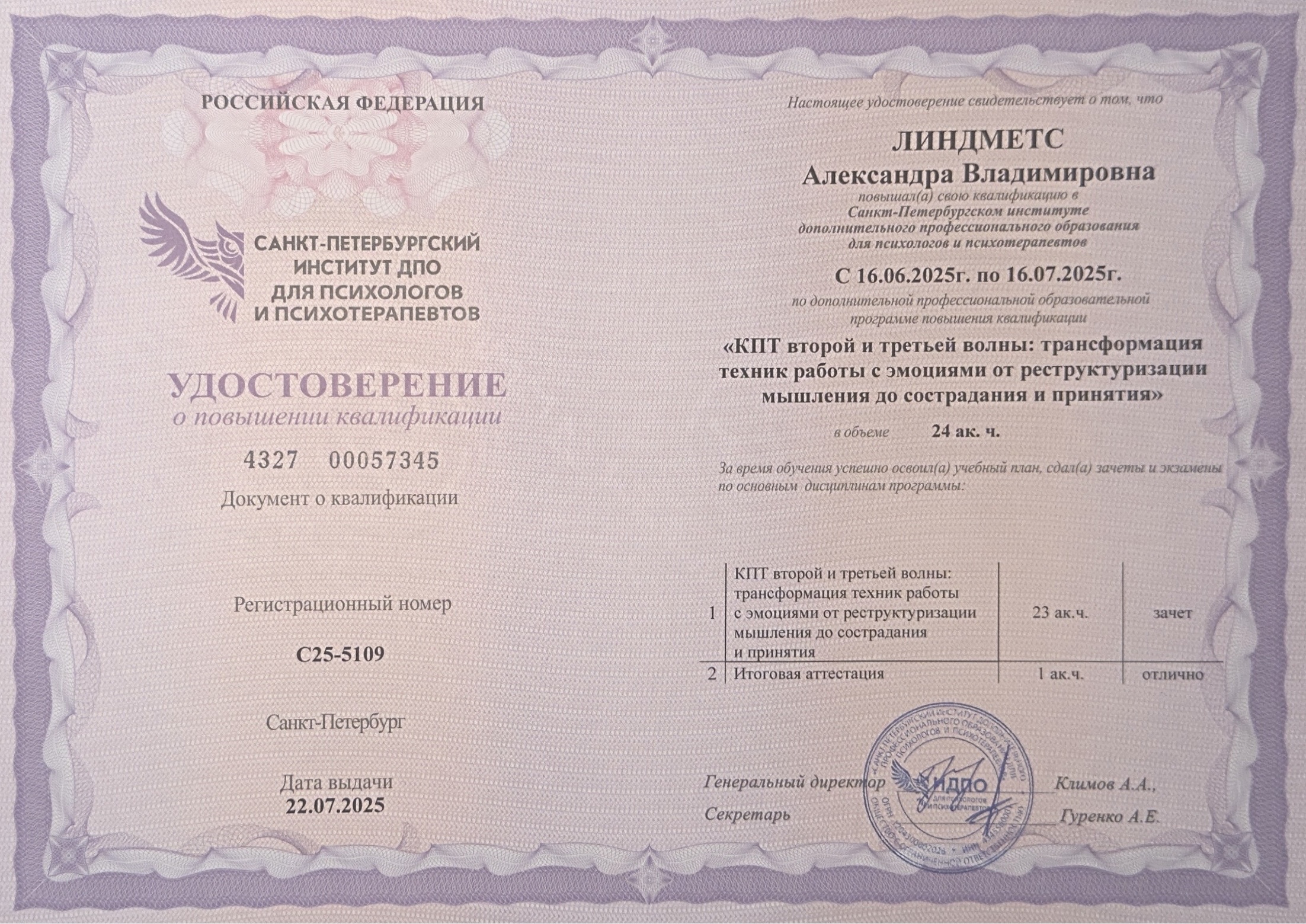 Мой подход строится на партнерстве и безопасности: мы вместе исследуем ваши стратегии мышления и поведения, чтобы найти те, которые мешают вам жить полноценной жизнью. Я постоянно повышаю квалификацию и слежу за актуальными данными в клинической практики, чтобы предлагать наиболее эффективные пути решения ваших запросов