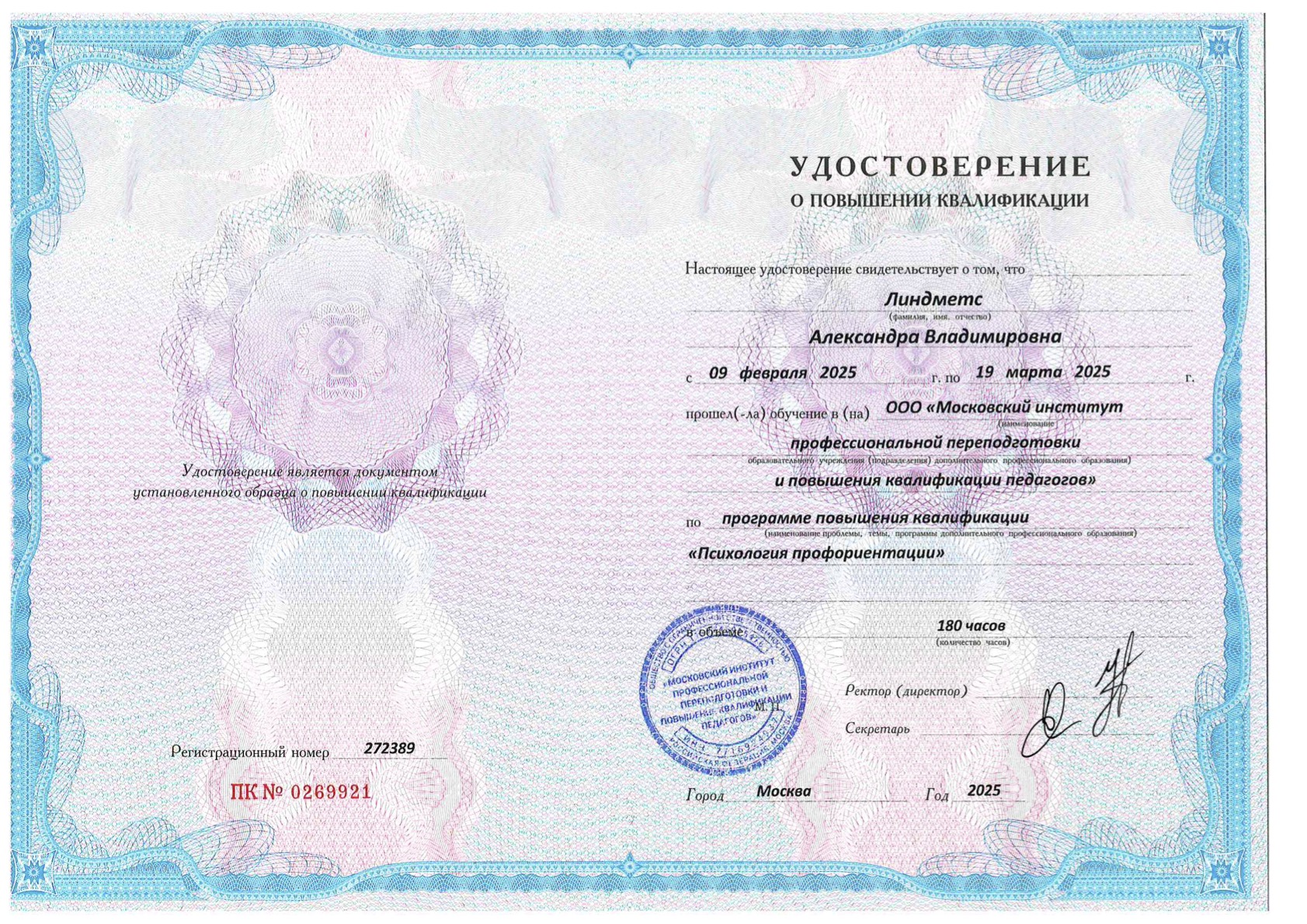 Принимает очно (город приёма):Санкт-Петербург