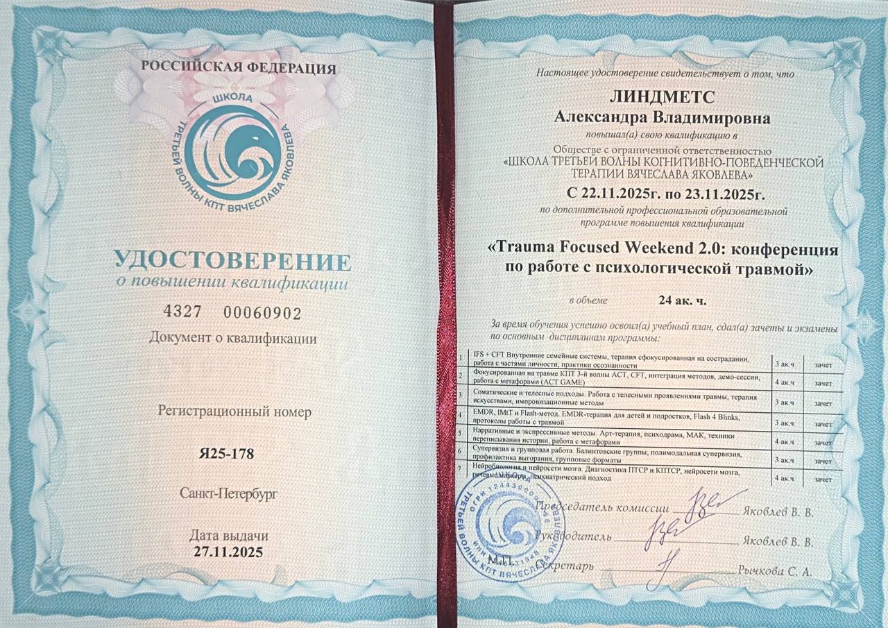 В работе я опираюсь на доказательную базу. Исхожу из того, что каждая трудность — это не приговор, а сложный механизм, который можно исследовать и перенастроить. Я помогаю клиентам разобраться в причинах их состояний, будь то последствия затяжного стресса, кризисные периоды или сложности в самореализации.