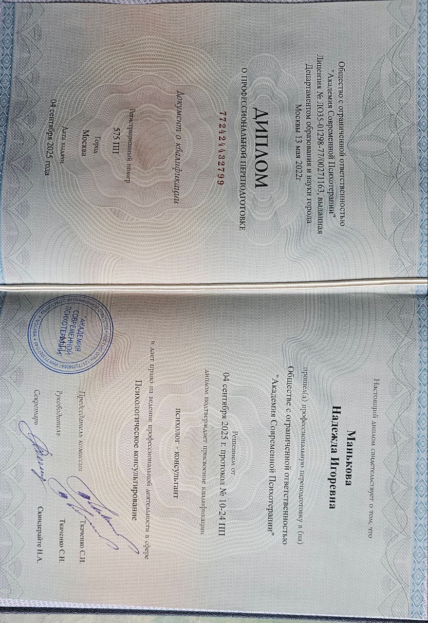 Благодарю Надежду, что откликнулась на мой запрос, помогла мне разобраться и отпустить волнующие меня вопросы долгие годы… работать было приятно, не было никакого давления, я чувствовала себя понятой и услышанной. Чувствую еще большой обьем работы впереди, но начало положено. Рекомендую Надежду как поддерживающего специалиста в ваших вопросах.