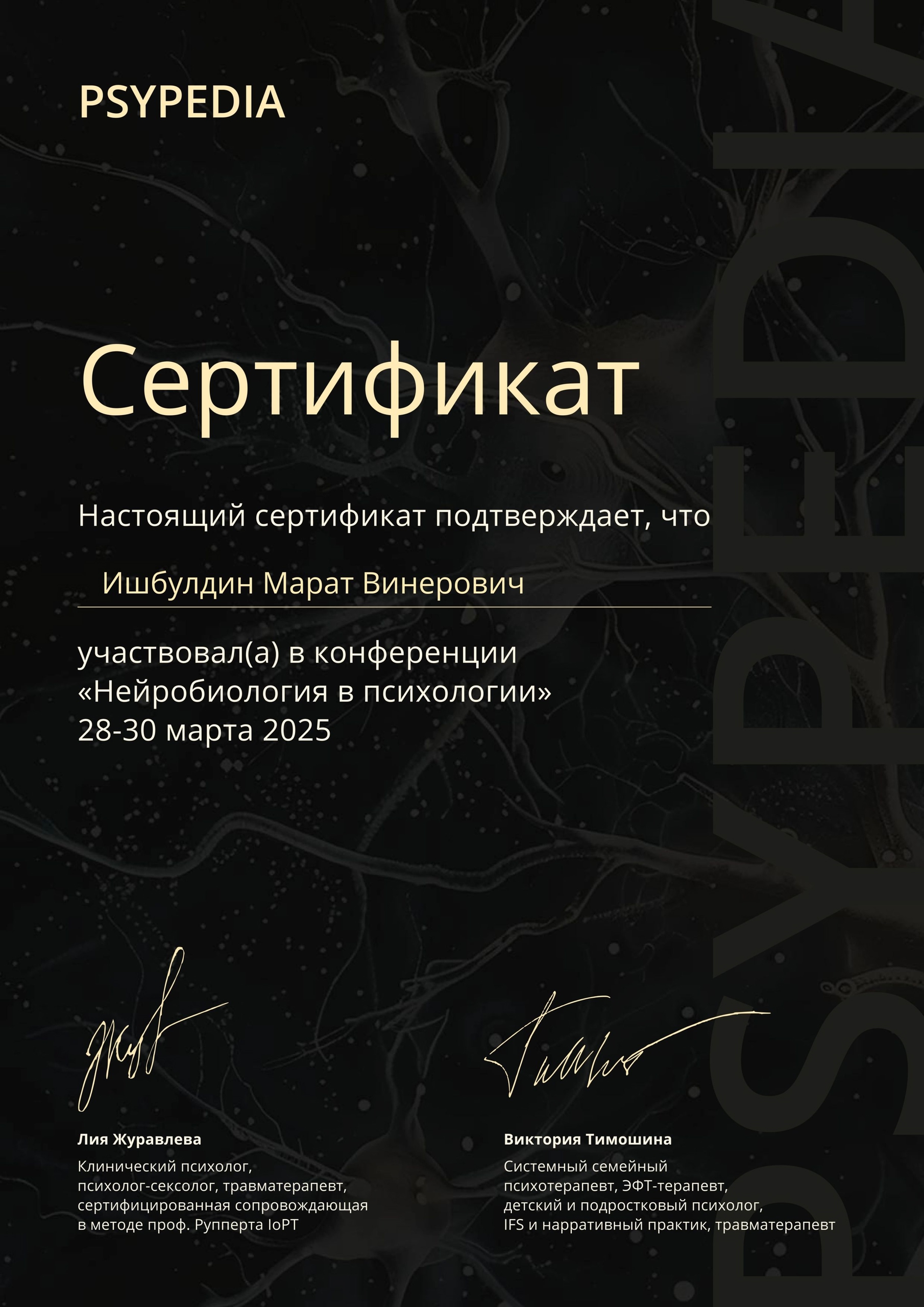 • Действующий член Ассоциации Когнитивно-Поведенческой Психотерапии