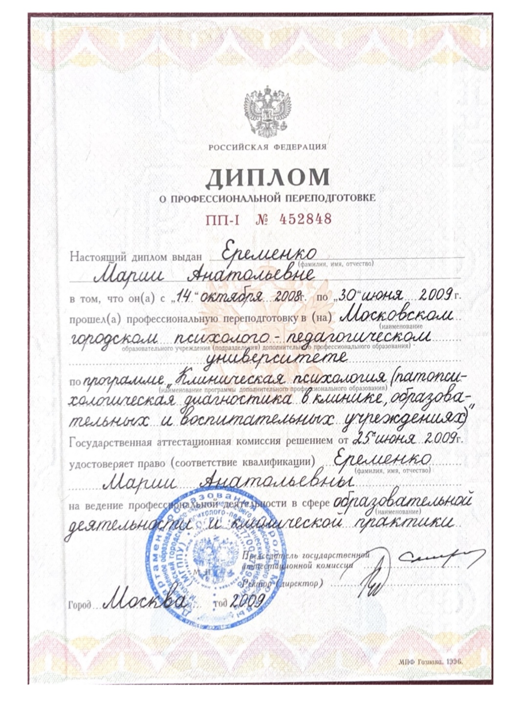 Мария — психолог, педагог-психолог с практическим опытом с 2009 года.