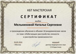 Доброго времени суток! Я — практикующий клинический психолог, КПТ, схема-терапевт, член Ассоциации когнитивно-поведенческой психотерапии.