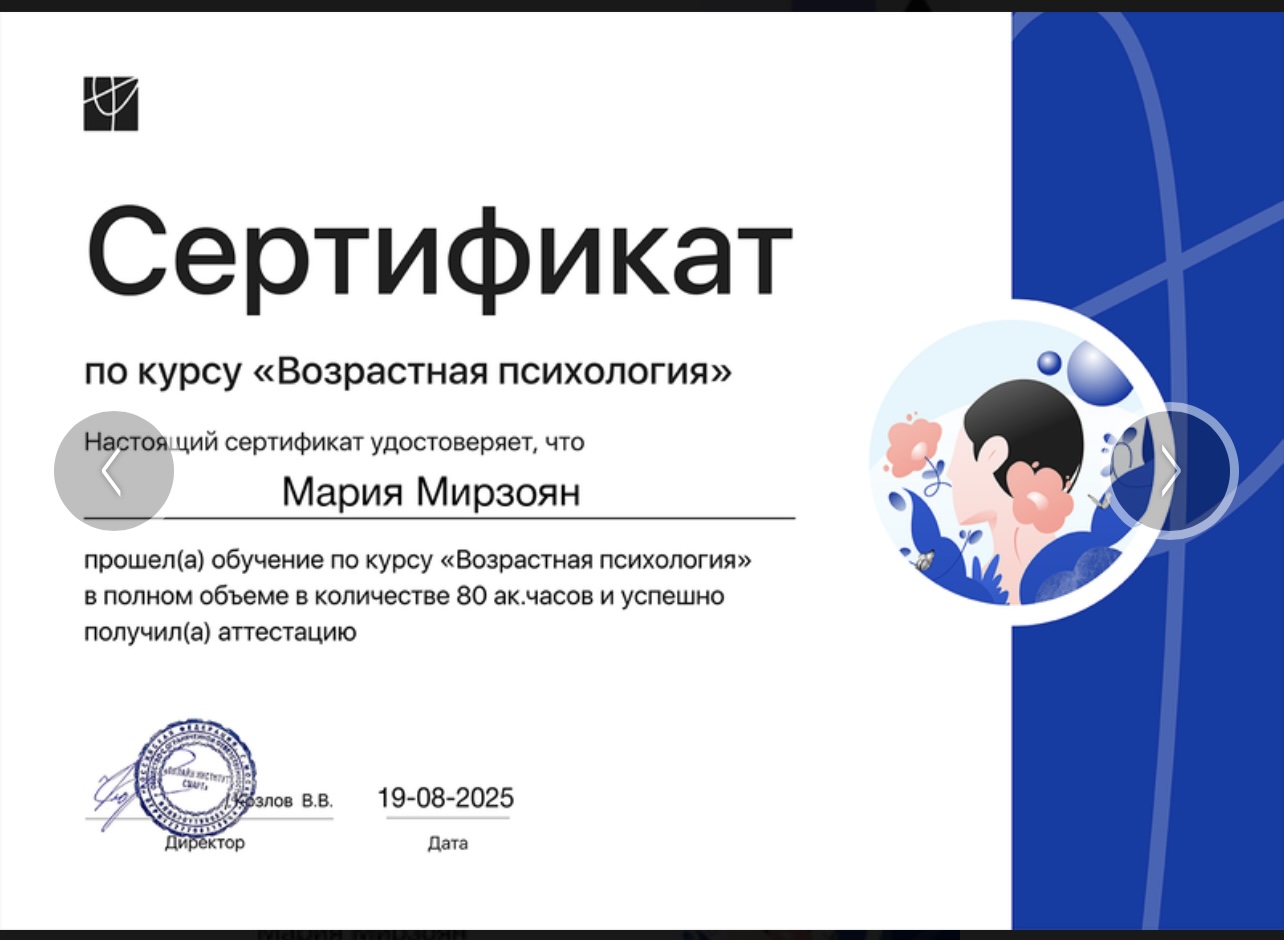 Мой опыт и образование (я дипломированный психолог) позволяют мне быть для вас одновременно и поддержкой, и проводником. Чтобы в итоге вы чувствовали себя уверенно и могли самостоятельно справляться с любыми жизненными вызовами.