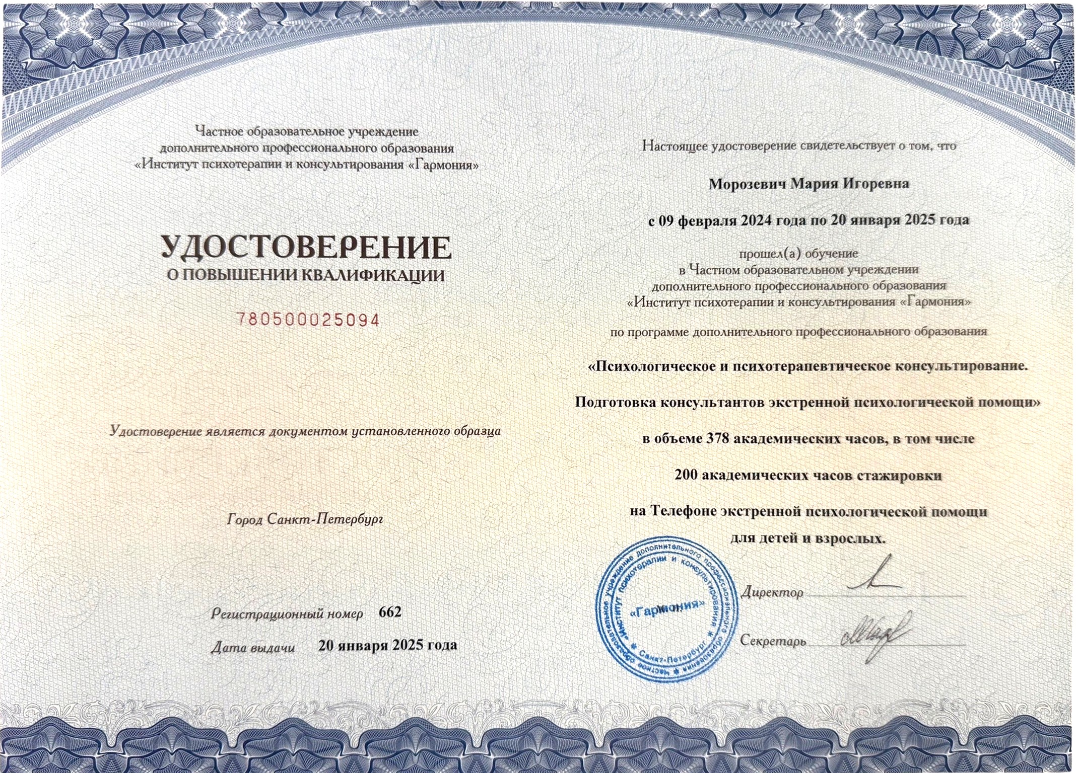 - 250+ часов работы на кризисной телефонной линии СПб.