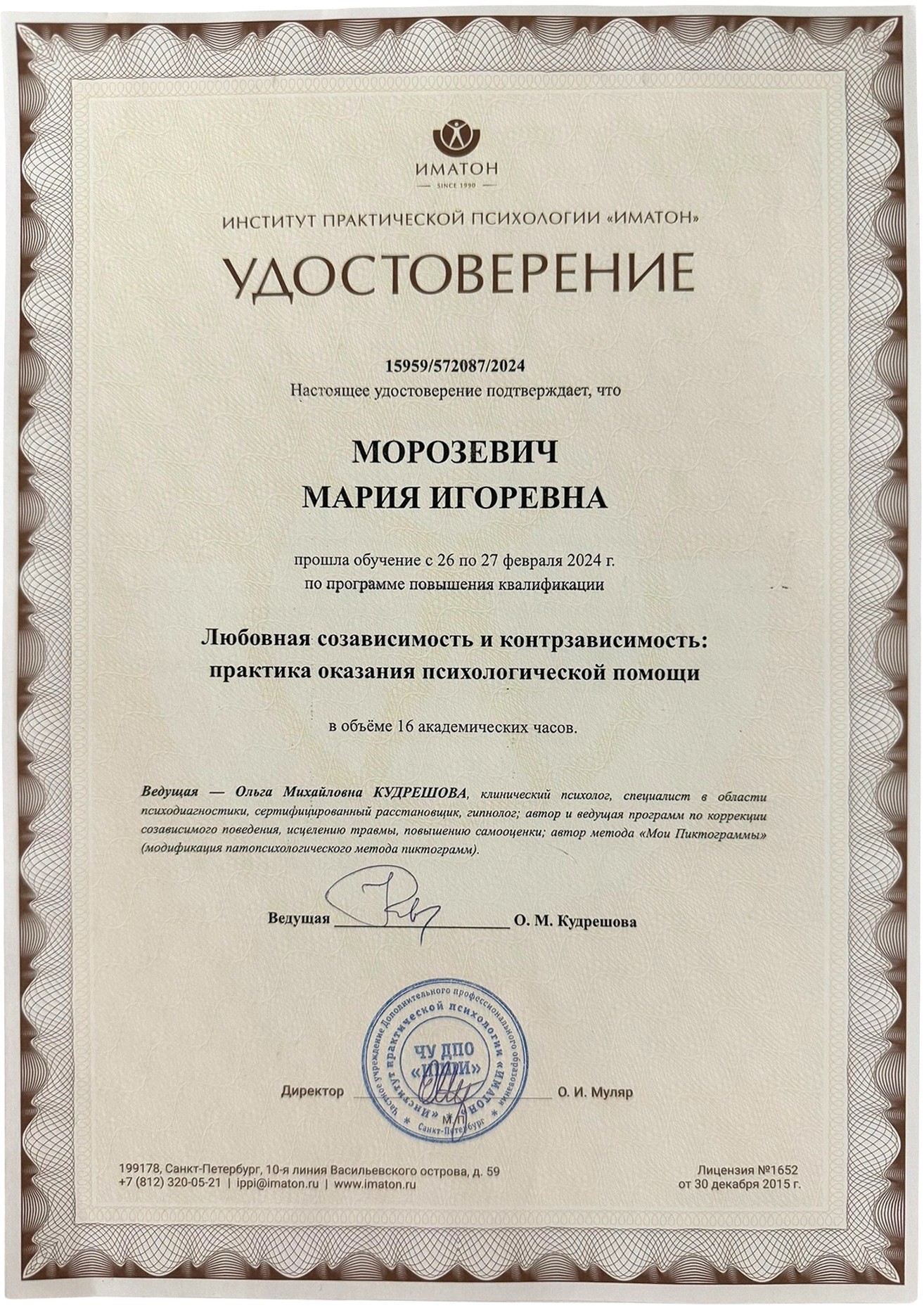 Здравствуйте! Меня зовут Мария, я — психолог. Работаю онлайн и принимаю очно в Санкт-Петербурге.