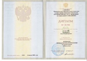 Подтверждённые дипломы по психологии:диплом о высшем образовании