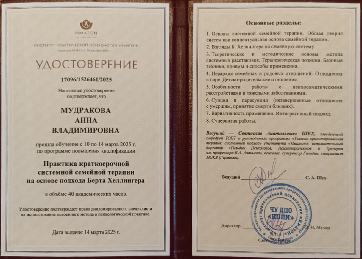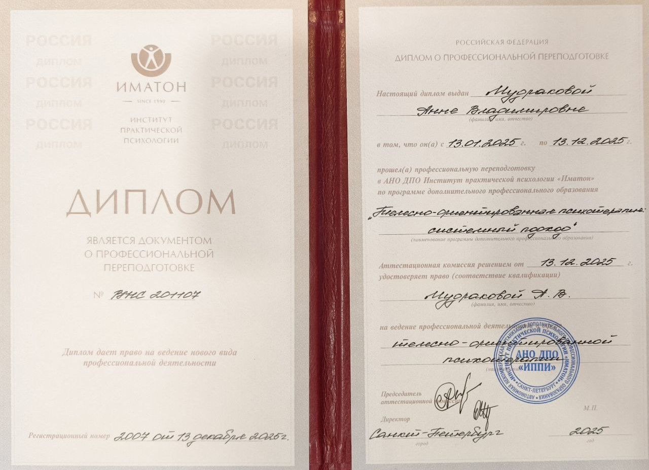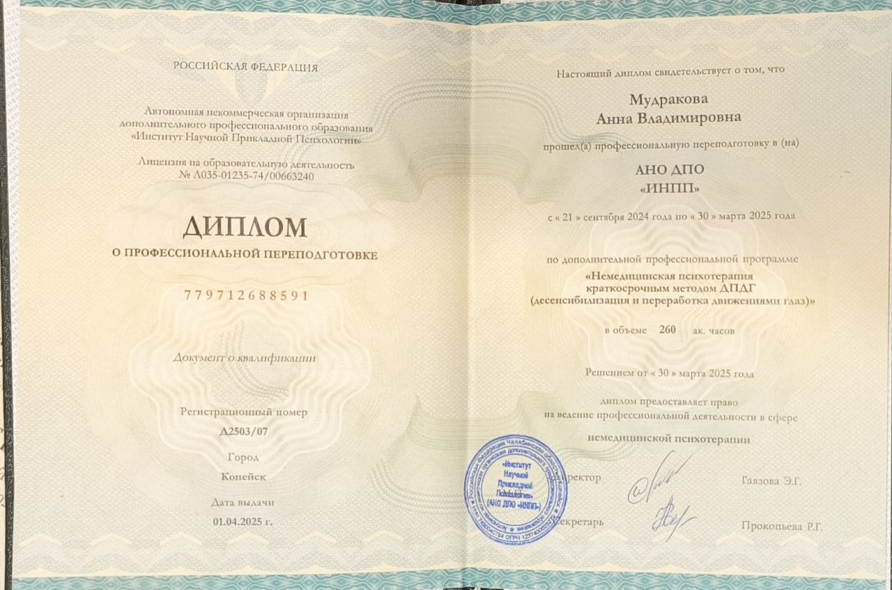 Здравствуйте! Меня зовут Анна, я практикующий психолог. Мой подход основан на синтезе различных методов, среди которых особое место занимает ДПДГ (десенсибилизация и переработка движением глаз), ТОП (телесно-ориентированная психотерапия), БЭСТ (био-энерго-системо-терапия) и семейная терапия. Эти методы позволяют эффективно работать с многими травмами и блоками, помогая клиентам находить внутренний ресурс для преодоления трудностей.