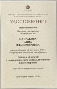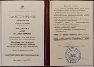 Психотерапевтический метод:EMDR (ДПДГ) Интегративный (смешанный) подход Краткосрочная стратегическая терапия (КСТ) Системная семейная психотерапия телесно ориентированная терапия
