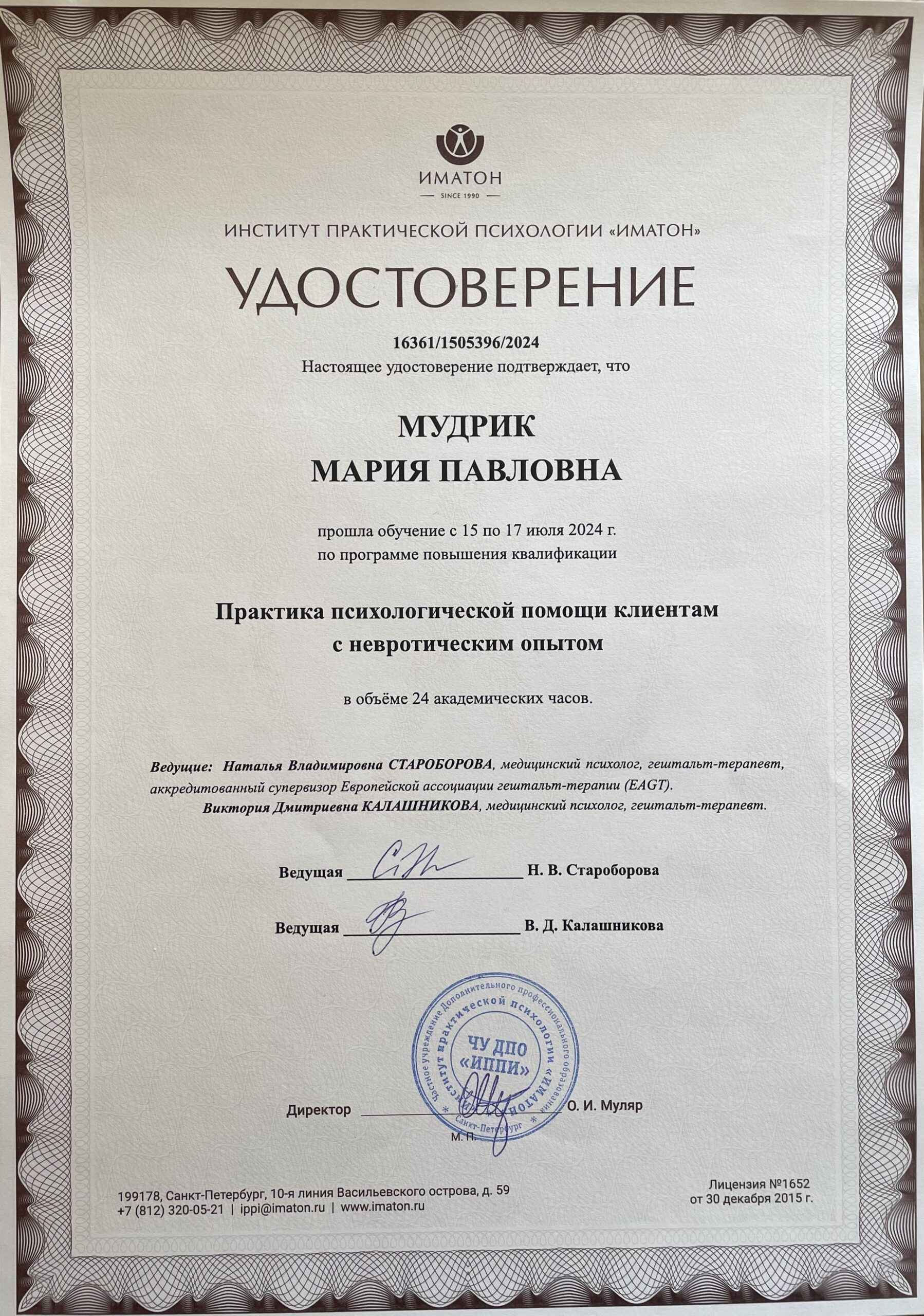 Мне 30 лет, я в профессии 2 года — и это значит, что я не работаю «по привычке», а внимательно и ответственно подхожу к каждому запросу. Я много учусь, люблю искусство, философию и психологию Юнга — всё это делает мою работу глубже и образнее.