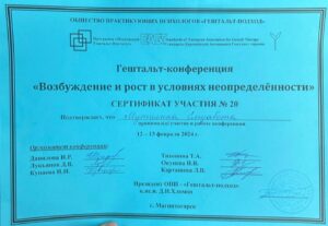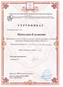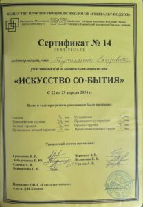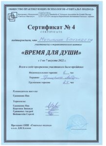 Без 1 года психотерапевт в гештальт-подходе.
