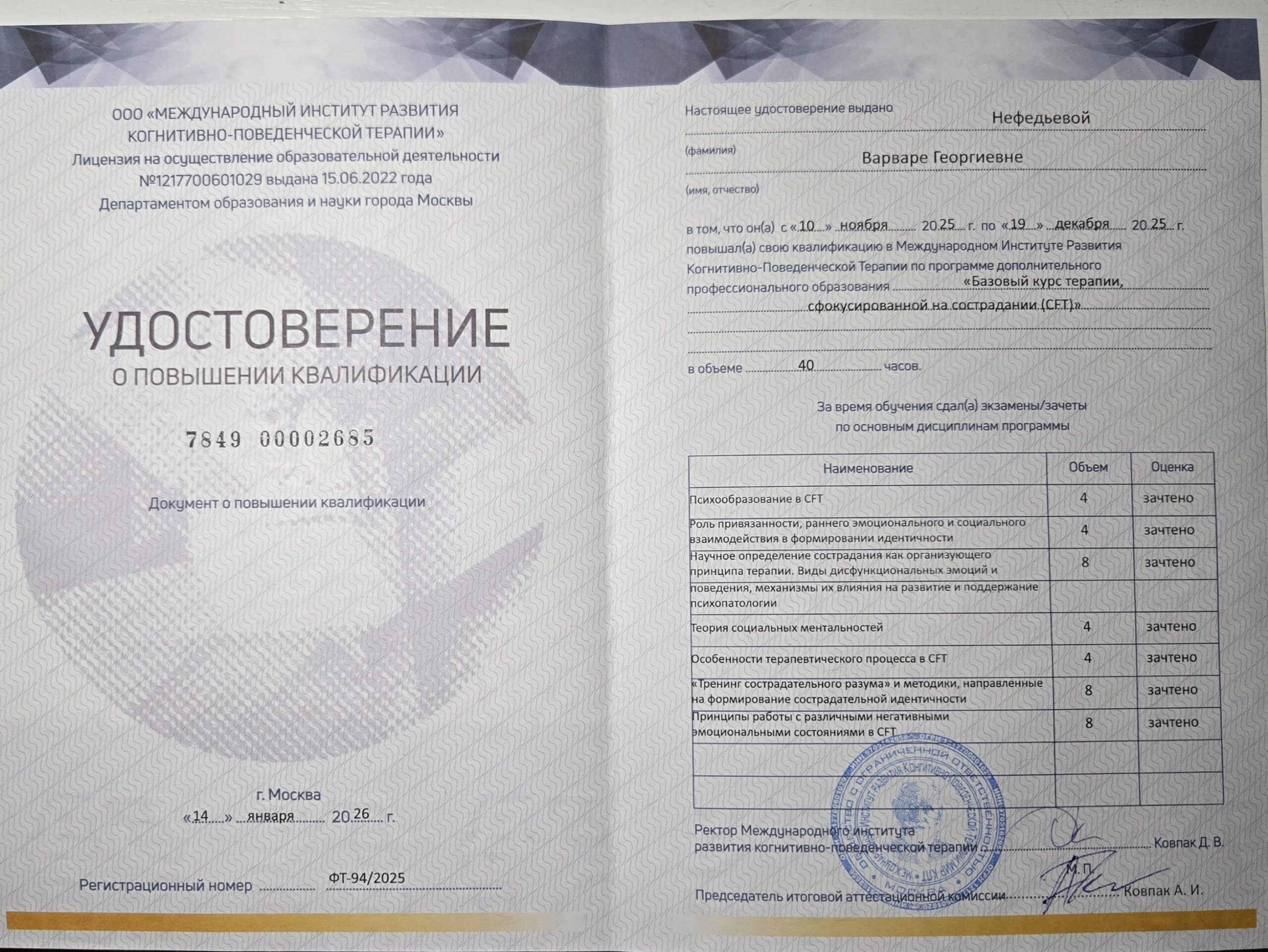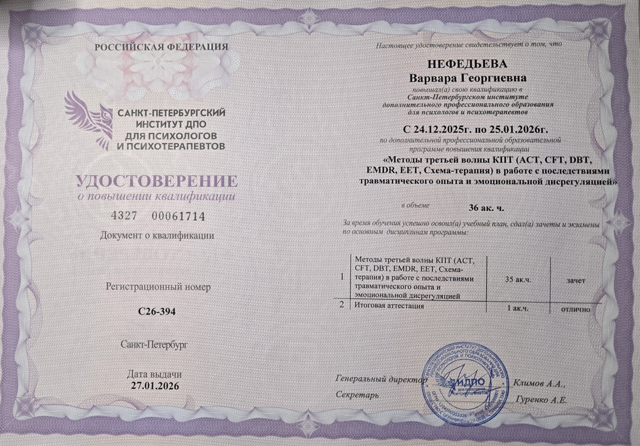 Работаю бережно, с уважением к границам и конфиденциальности. Прохожу личную терапию и супервизии, регулярно повышаю квалификацию.