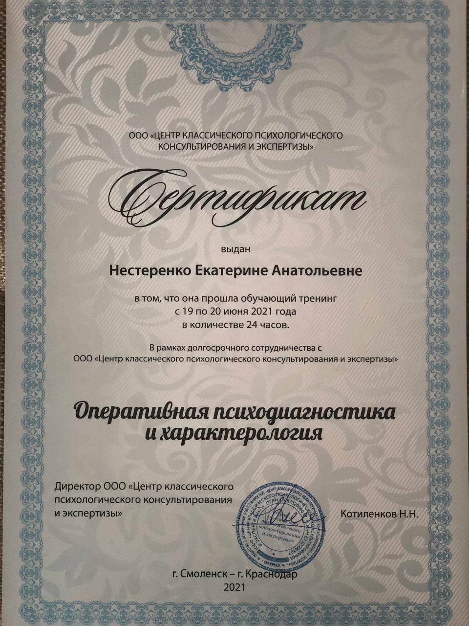 Нестеренко Екатерина Анатольевна