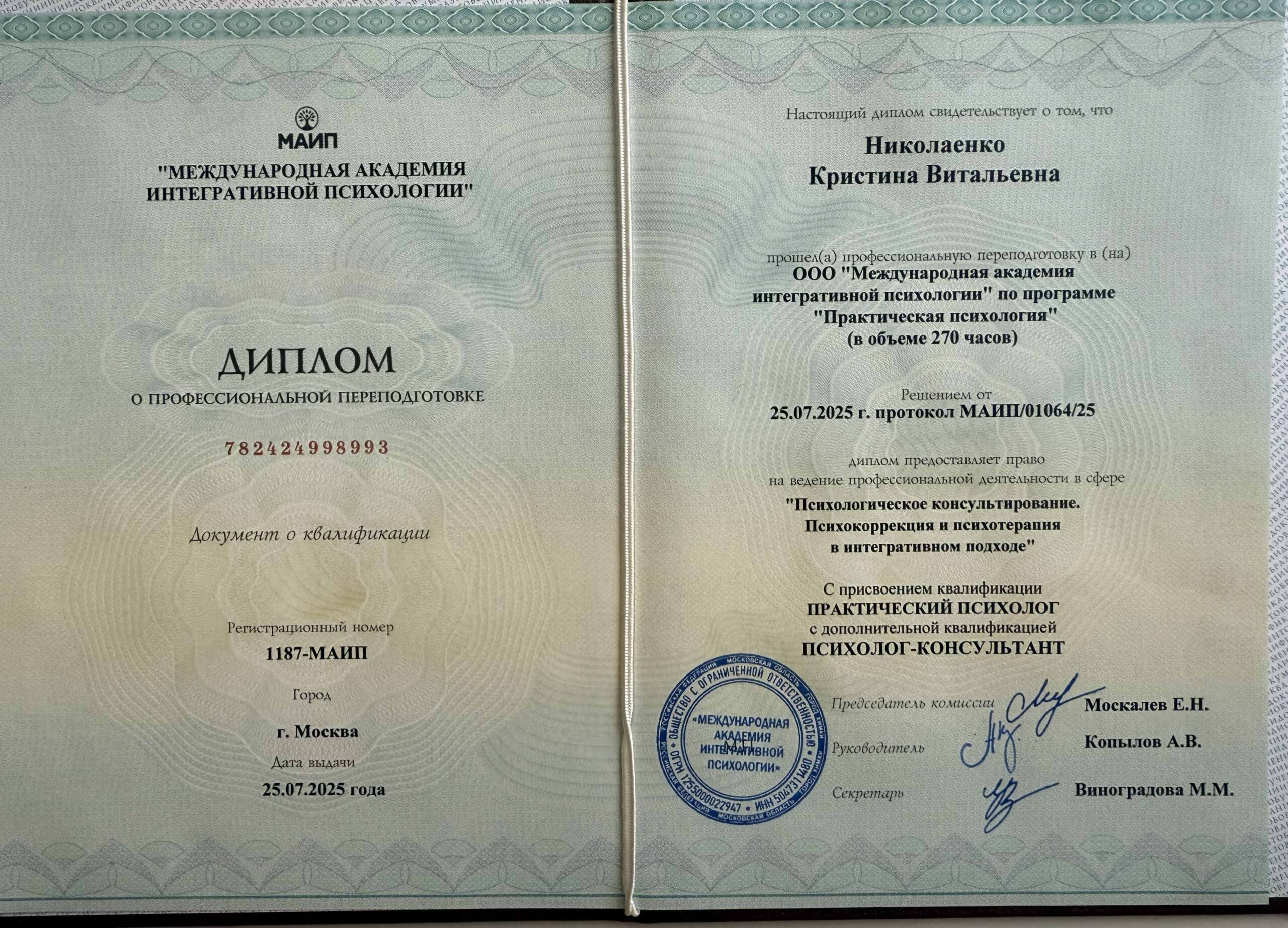 Моя главная задача - помочь вам не просто справиться с кризисом, а мягко и глубоко исследовать его корни: те убеждения, страхи и старые модели, которые заставляют мириться с болью. Чтобы изменения были не временными, а настоящими, и вы смогли навсегда выйти из замкнутого круга.