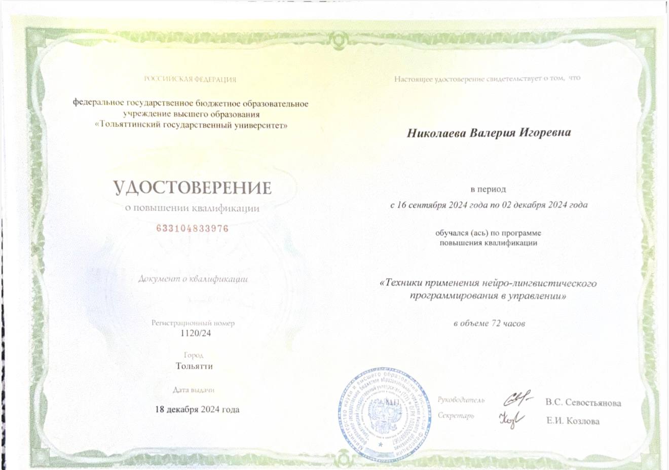 Николаева Валерия Игоревна