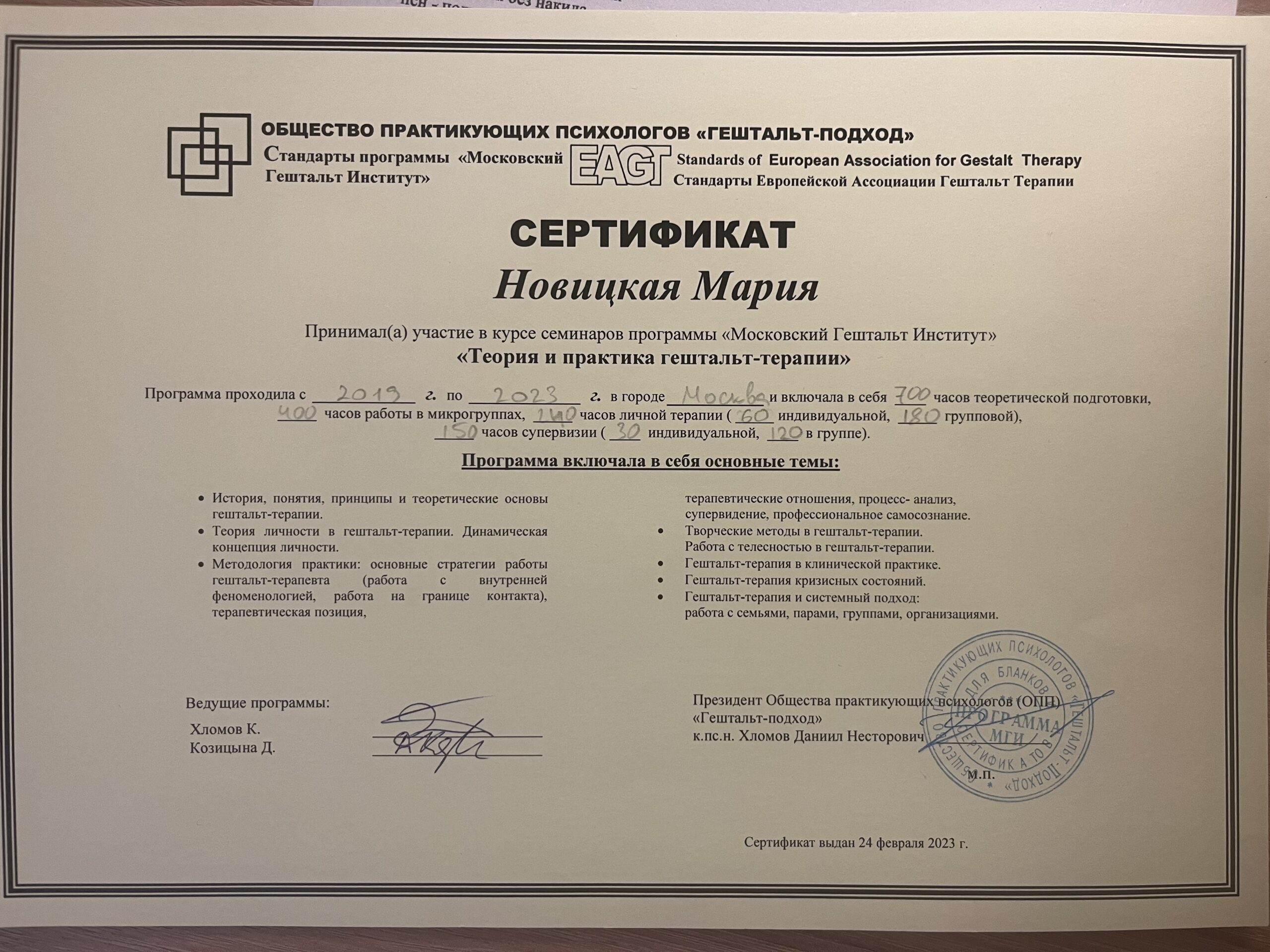 Вообще считаю, что изменения происходят только через собственный опыт. Психотерапевт — это грамотный опытный попутчик и соратник, но не более того.