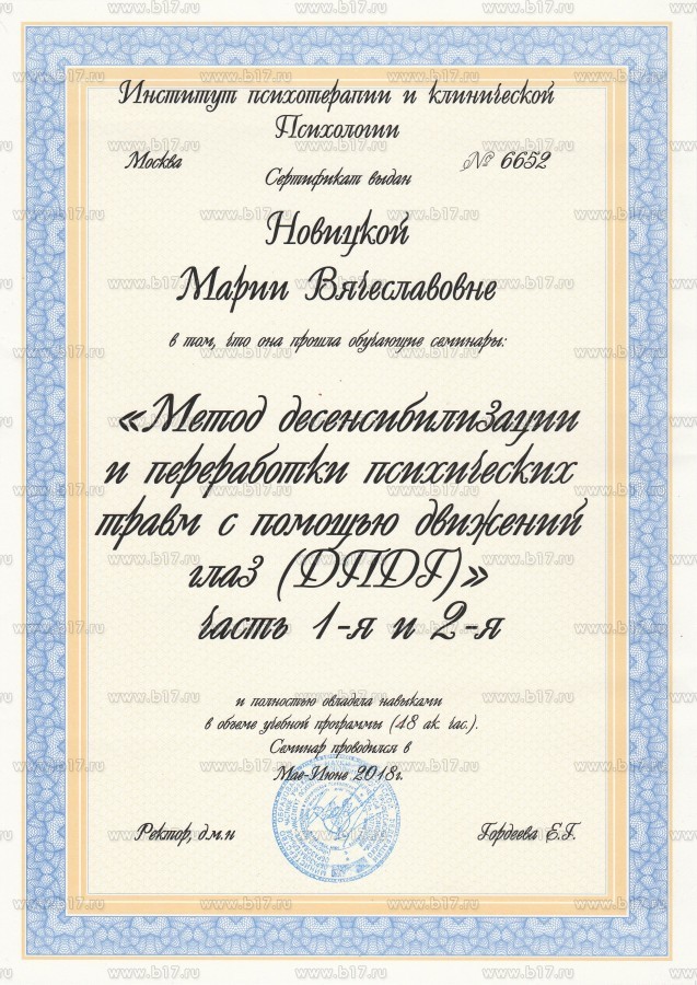 Методы работы:EMDR (ДПДГ) Арт-терапия Гештальт-терапия Гуманистические направления Интегративный (смешанный) подход Понимающая психотерапия / клиент-центрированный подход Экзистенциальная психотерапия