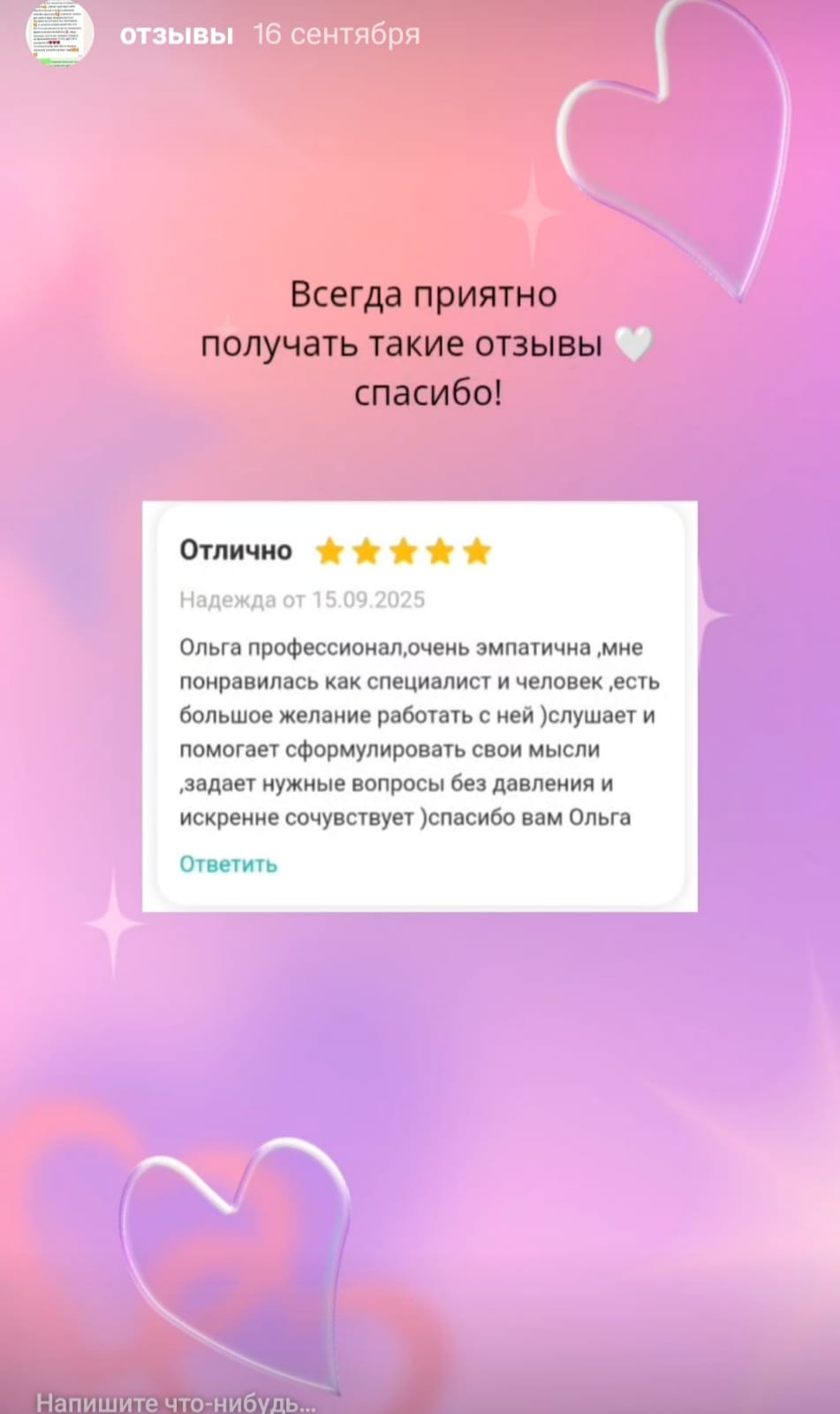 Прожила сама и помогу вам справиться с выгоранием, тревогой, проблемами в отношениях, ревностью, состоянием после развода, непониманием своих желаний, депрессией. Помогу создать гармоничные отношения, выйти из кризиса, жить в ладу с собой.