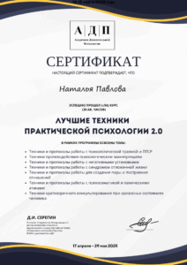 Здравствуйте! Меня зовут Наталья. Я - дипломированный клинический психолог, сертифицированный специалист по работе с психологическими травмами.
