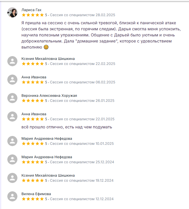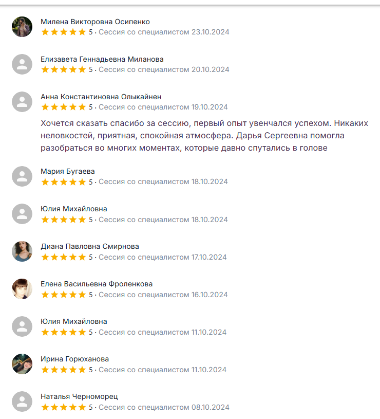 💡 Вы увидите ощутимый результат в обозримые сроки. Я не растягиваю процесс на годы. Работаю честно: если пойму, что не могу быть Вам полезна - прямо скажу и помогу найти другого специалиста.