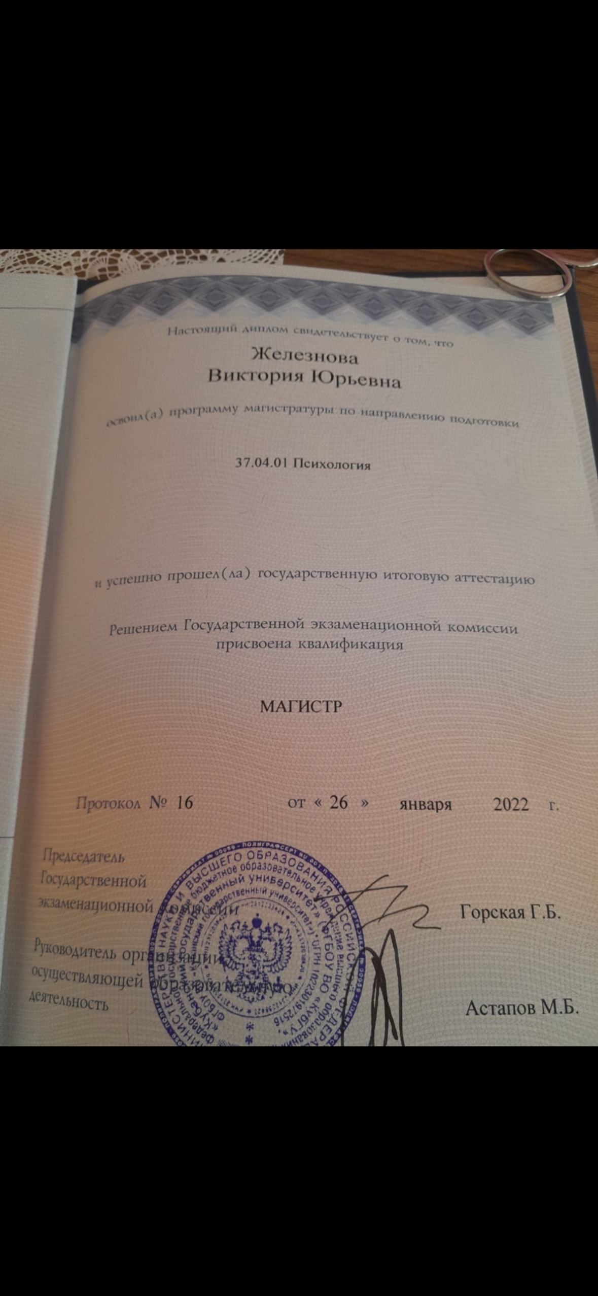 Подтверждённые дипломы по психологии:диплом о высшем образовании диплом о переподготовке (>1000 часов)