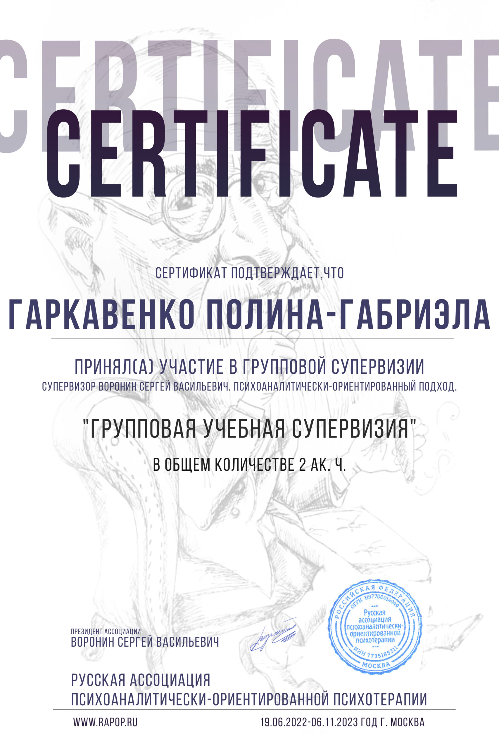 — прохождение двух практик в Русской Ассоциации (РАПОП) - 98 часов, а также долгосрочное участие в различных группах этой ассоциации (более 250 часов)