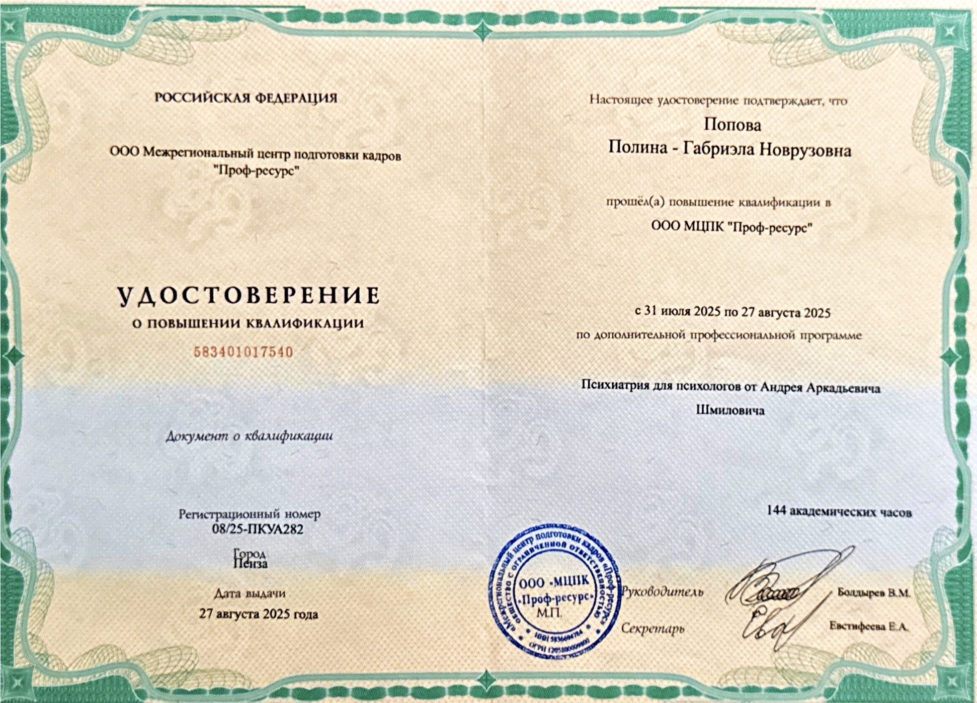(некоторые прикрепленные документы оформлены на фамилию Гаркавенко, далее я ее сменила на Попова)