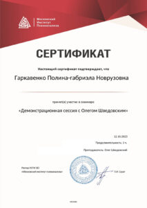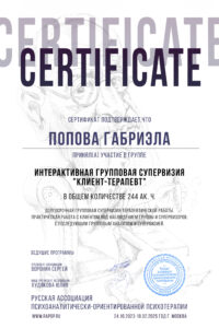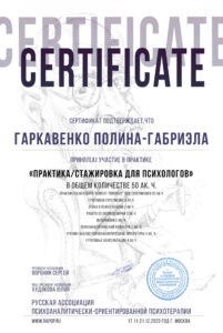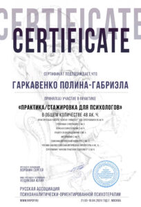 — прохождение двух практик в Русской Ассоциации (РАПОП) - 98 часов, а также долгосрочное участие в различных группах этой ассоциации (более 250 часов)
