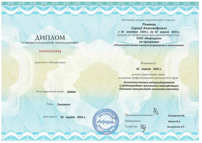 Я клинический психолог, сексолог, специалист по работе с семьёй и преподаватель психологии. Более 7 лет я поддерживаю взрослых, подростков и родителей в самых разных жизненных ситуациях — от тревоги и выгорания до потерь, семейных конфликтов и внутреннего кризиса.