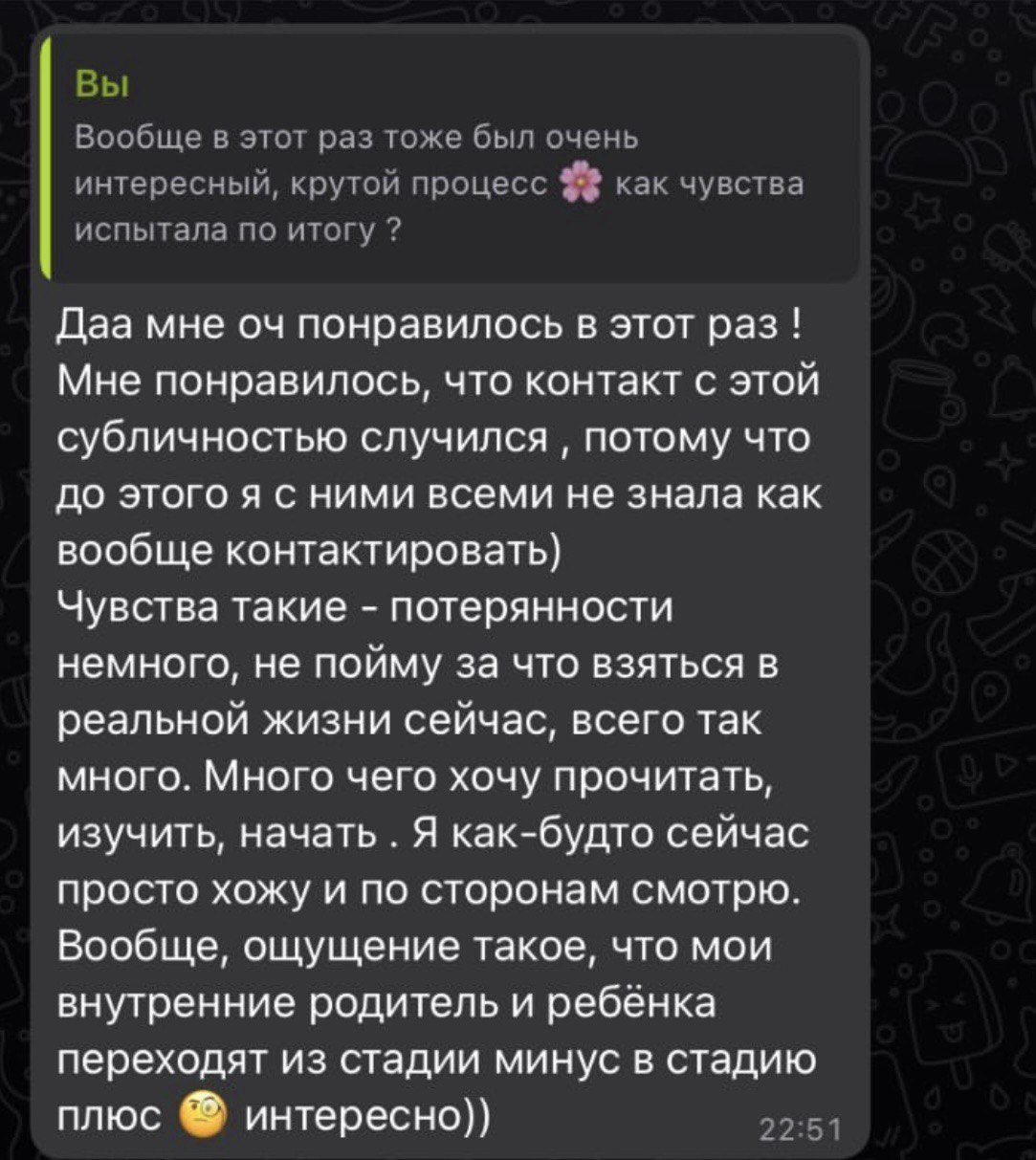 Я предлагаю не просто поговорить, а создать для вас индивидуальный "набор инструментов" для психического здоровья. Мы будем работать не только с симптомами, но и с их глубинными причинами. Вместе мы сможем превратить хаос в ясность, а страдание — в осмысленный опыт и личностный рост.
