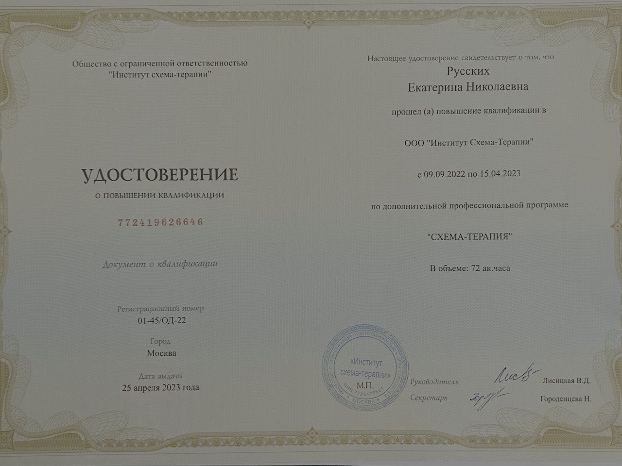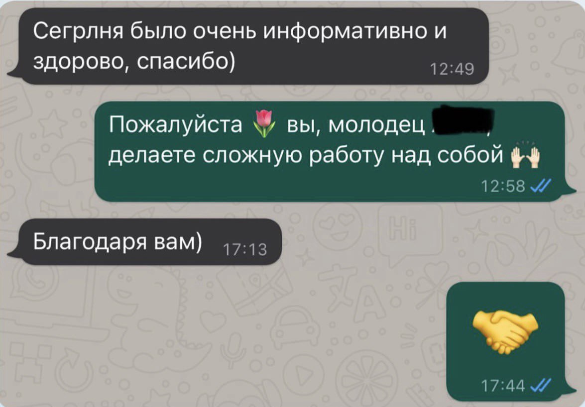 Что вас ждет на сессиях?) Проработка когнитивных искажений и дезадаптивных схем (чтобы перестать наступать на одни и те же грабли), обучение навыкам эмоциональной регуляции, фокус на переносе полученных навыков в повседневную жизнь.