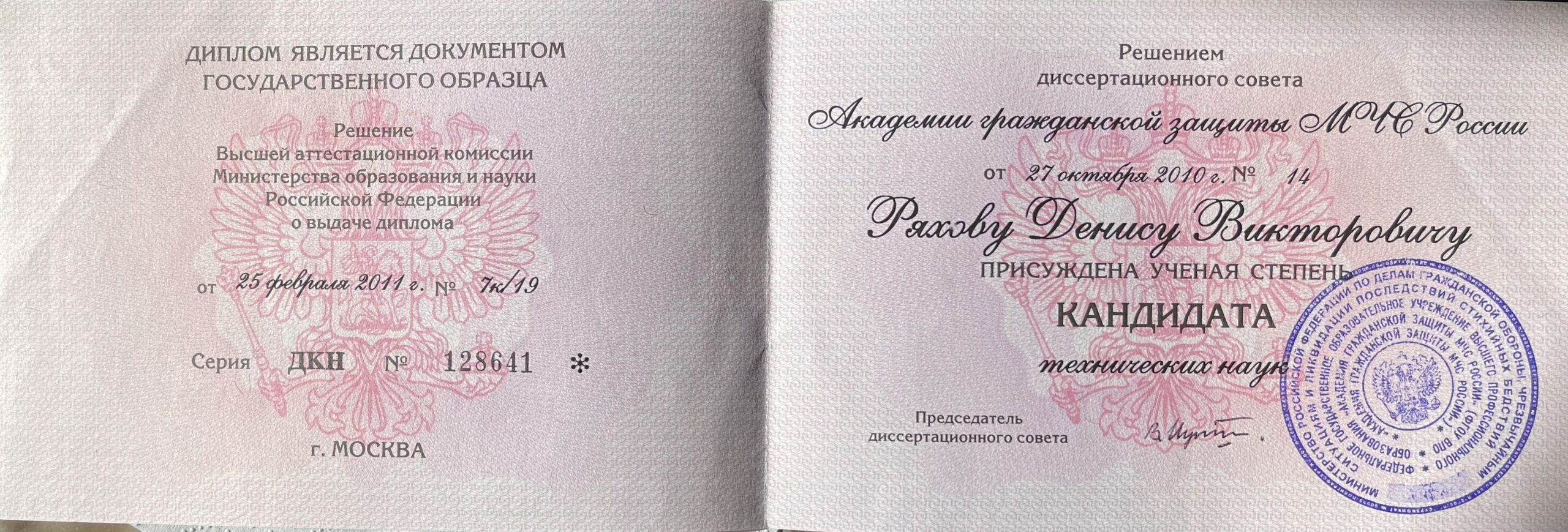 Помимо психологического имею также высшее военно-инженерное образование, которое было получено ранее. Являюсь кандидатом технических наук.