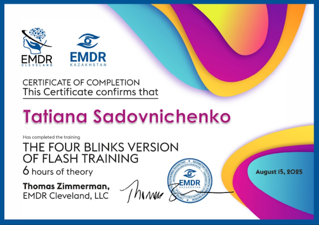 Методы работы:EMDR (ДПДГ) Арт-терапия Интегративный (смешанный) подход Когнитивно-поведенческая (КПТ) Терапия принятия и ответственности (ACT)