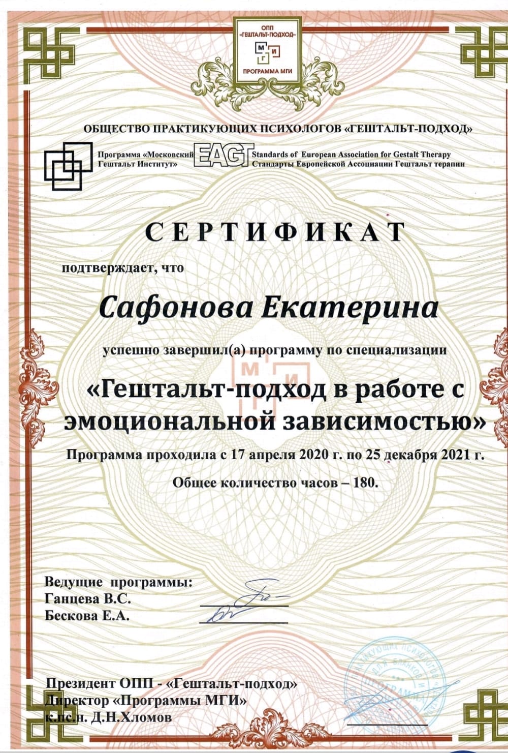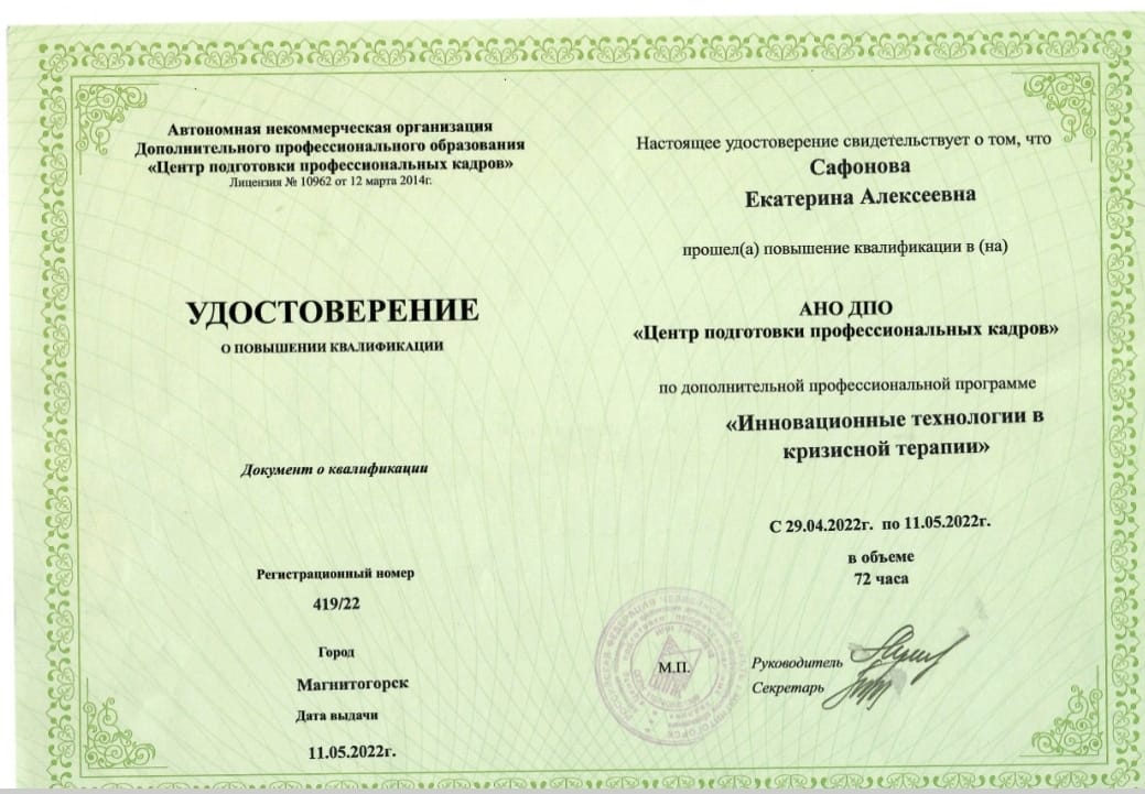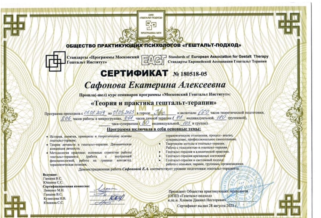 Чтобы оставаться для вас чутким и профессиональным проводником, я постоянно учусь, а также регулярно прохожу личную терапию и супервизии. Для меня это основа ответственной практики.