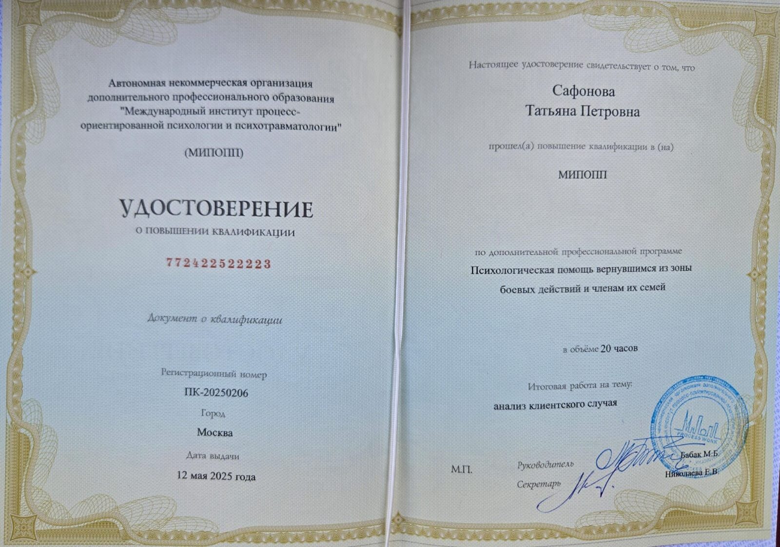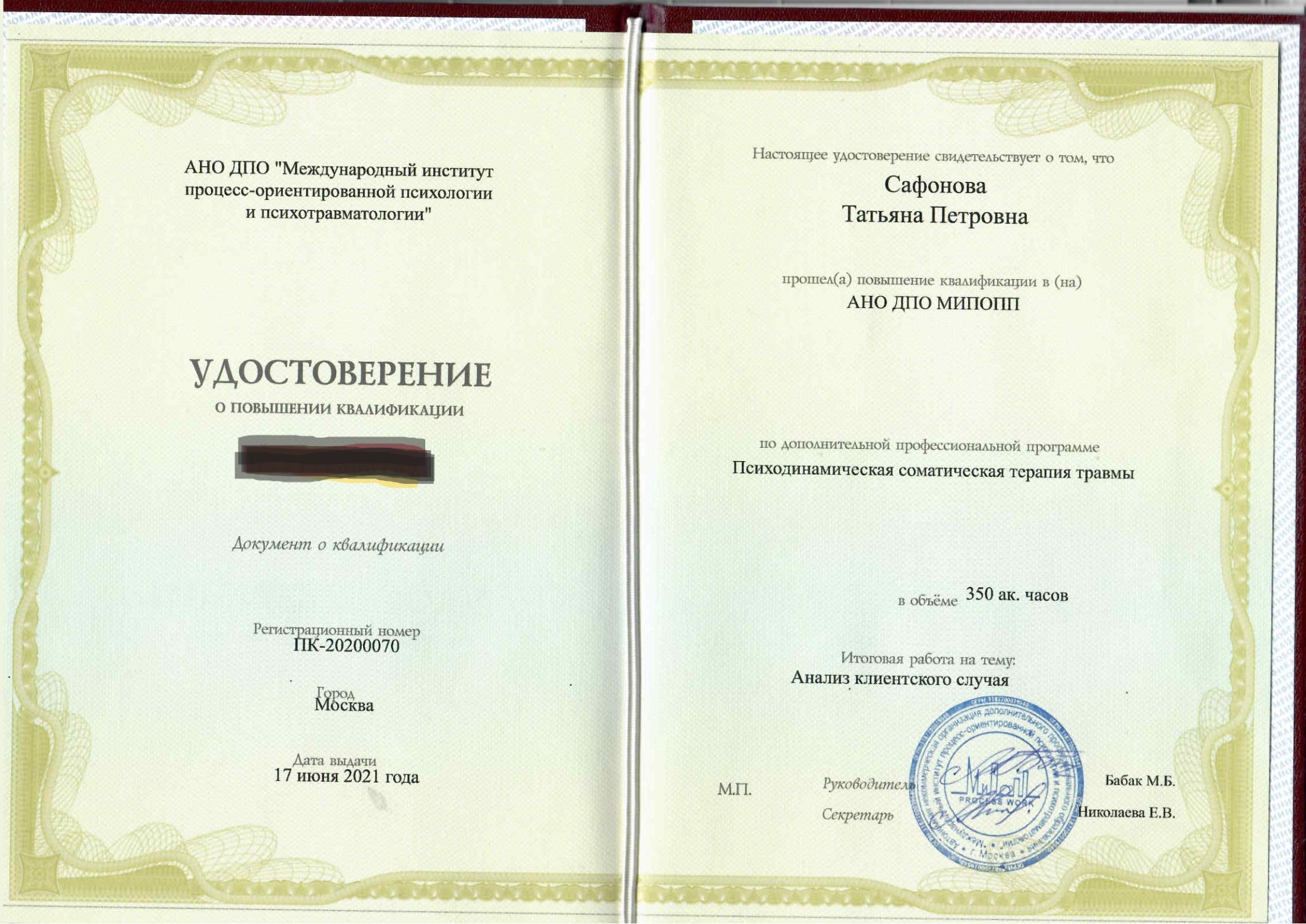 Здравствуйте, я практикующий психолог (получила степень магистра). Так-же являюсь членом Ассоциации Когнитивно-поведенческой психотерапии.