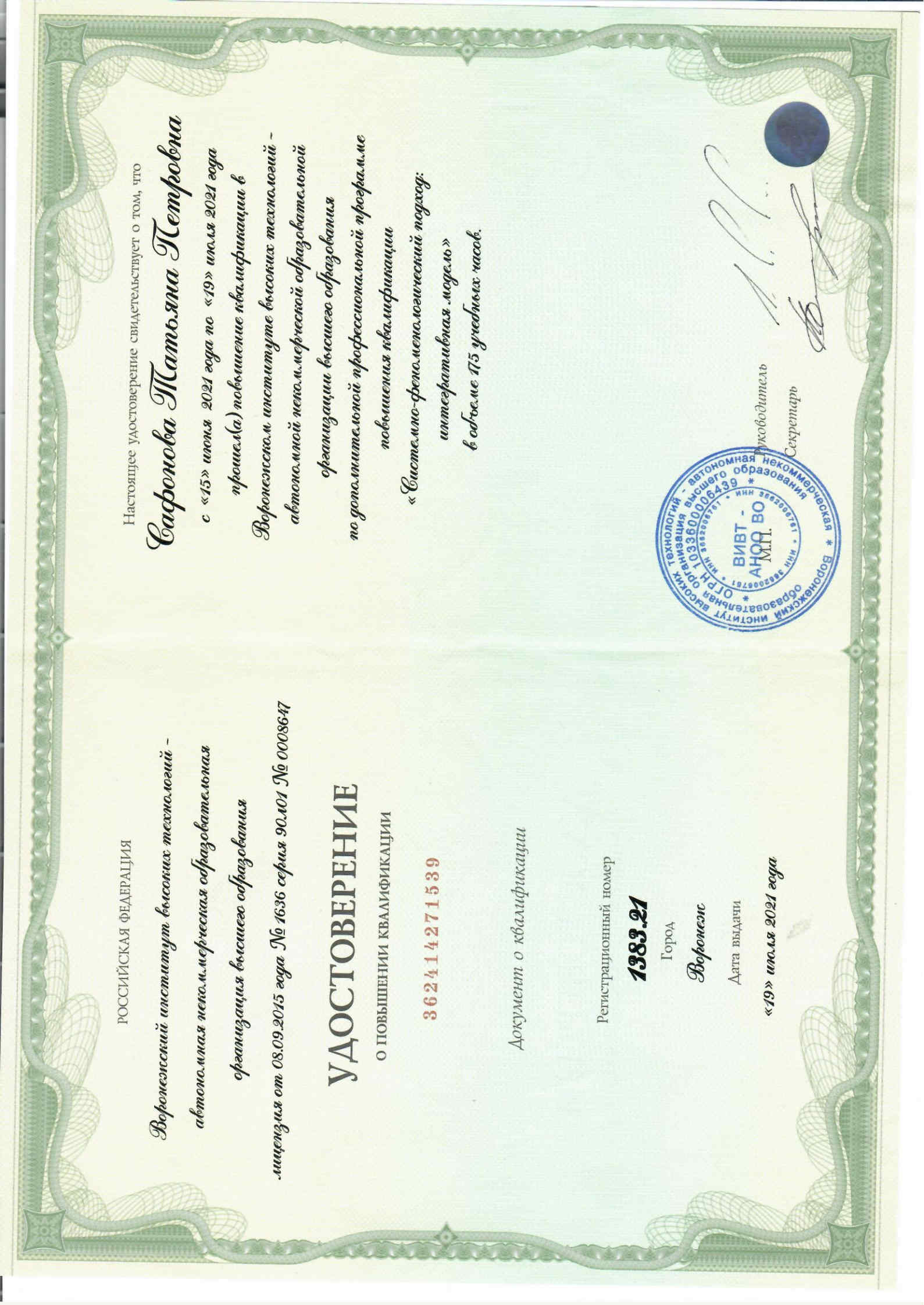 Сафонова Татьяна Петровна
