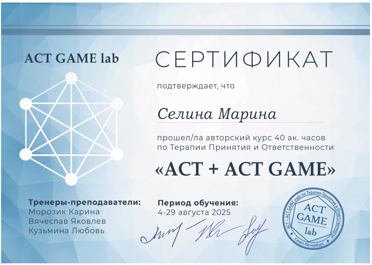 Также я веду ACT Game — терапевтическую группу в игровом формате для глубокого и практического знакомства с собой.