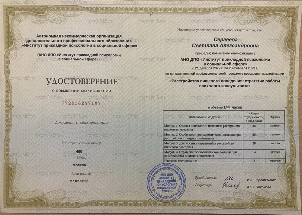 Психолог , 35 летС кем работает специалист: взрослые