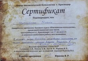 Я психолог- работающий в рамках аналитической психологии (юнгианский анализ) и Когнитивно-Поведенческой Терапии (являюсь членом Ассоциации когнитивно-поведенческой психотерапии (АКПП).