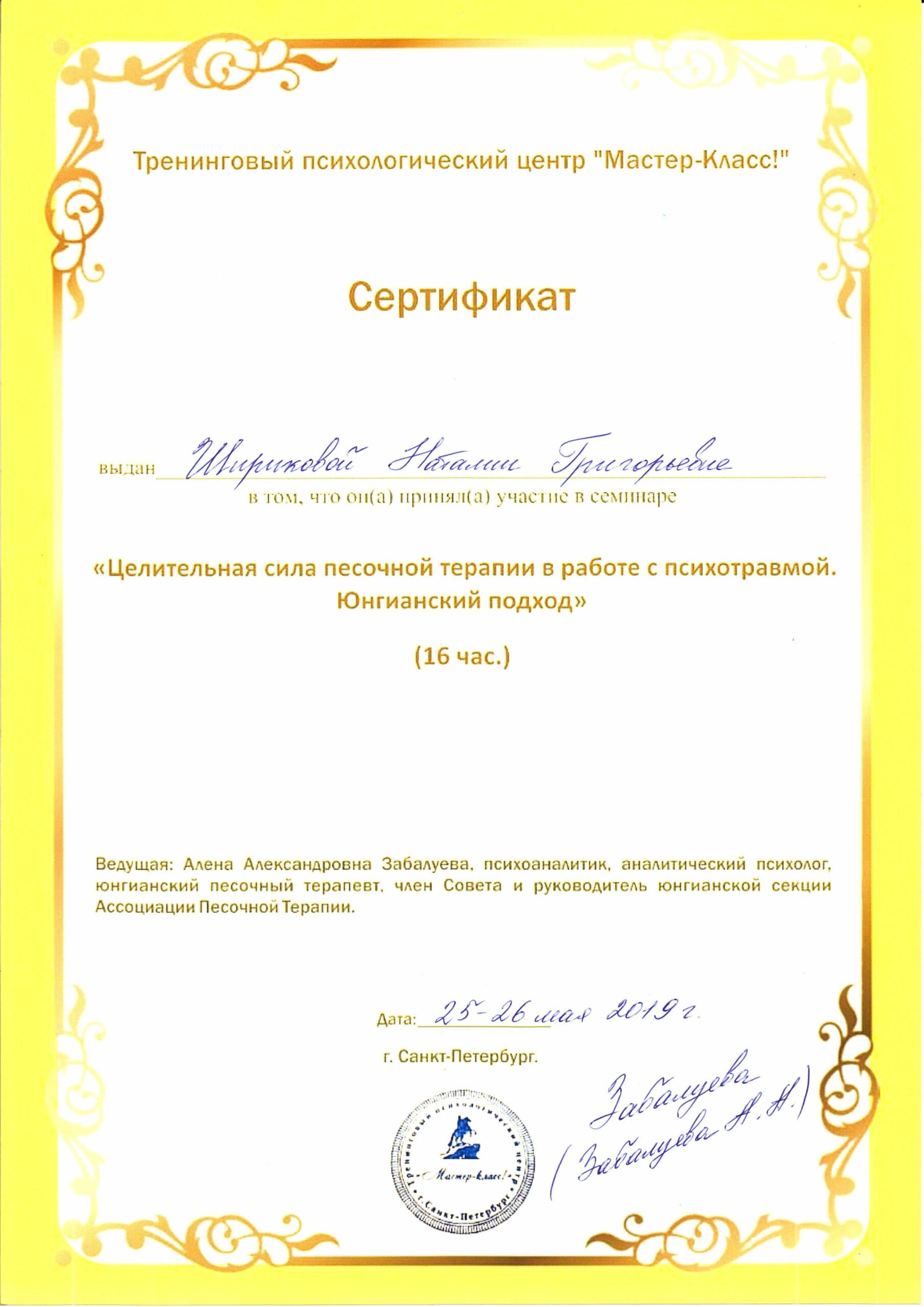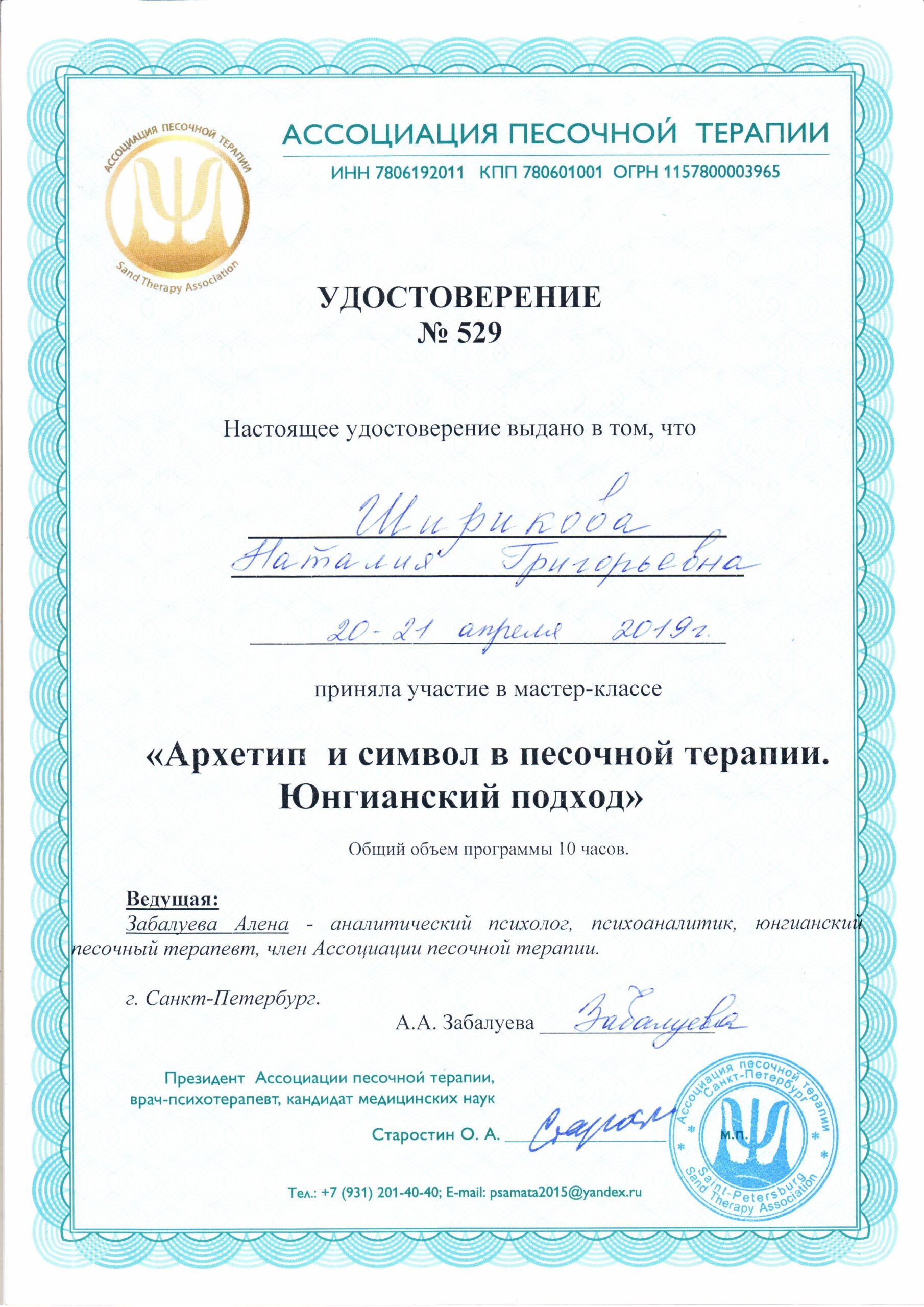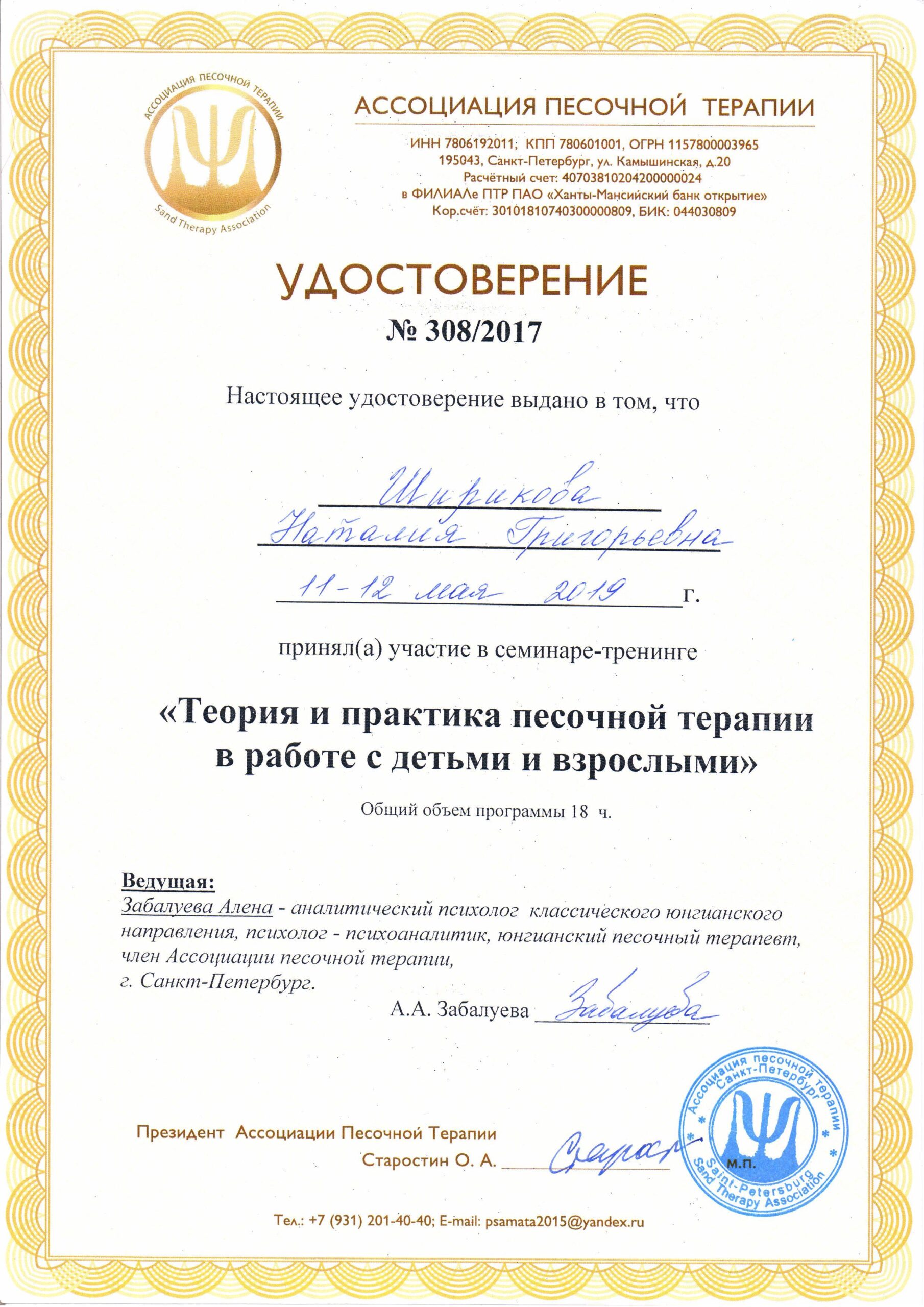 Состою в профессиональном сообществе: Ассоциация песочной терапии.