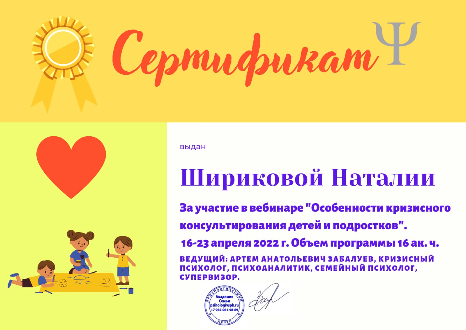 Также консультирую взрослых по вопросам детско-родительских отношений,