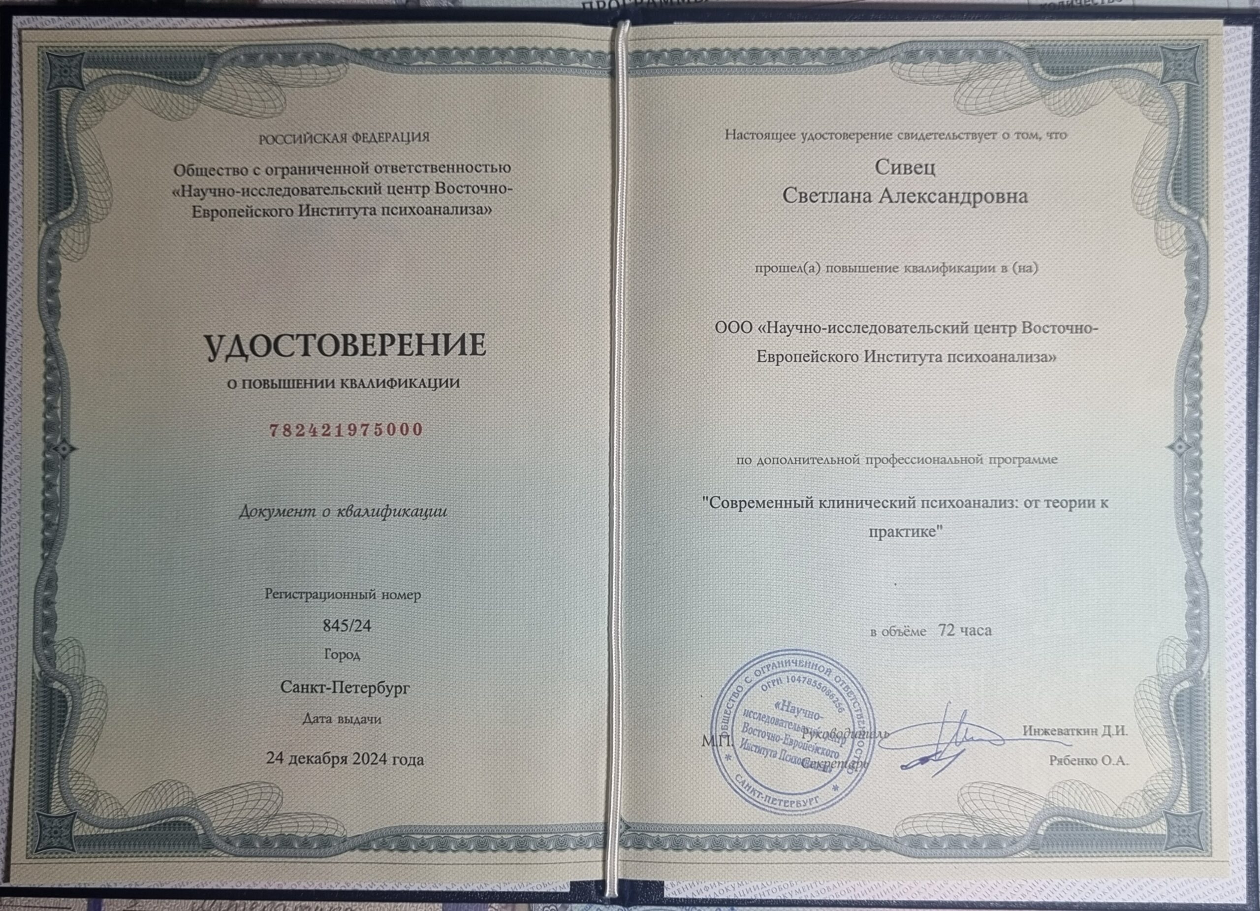Обладаю эмпатией,творческим подходом и нестандартным мышлением,которые помогают найти индивидуальный подход к клиенту и подобрать уникальный терапевтический метод под каждого.