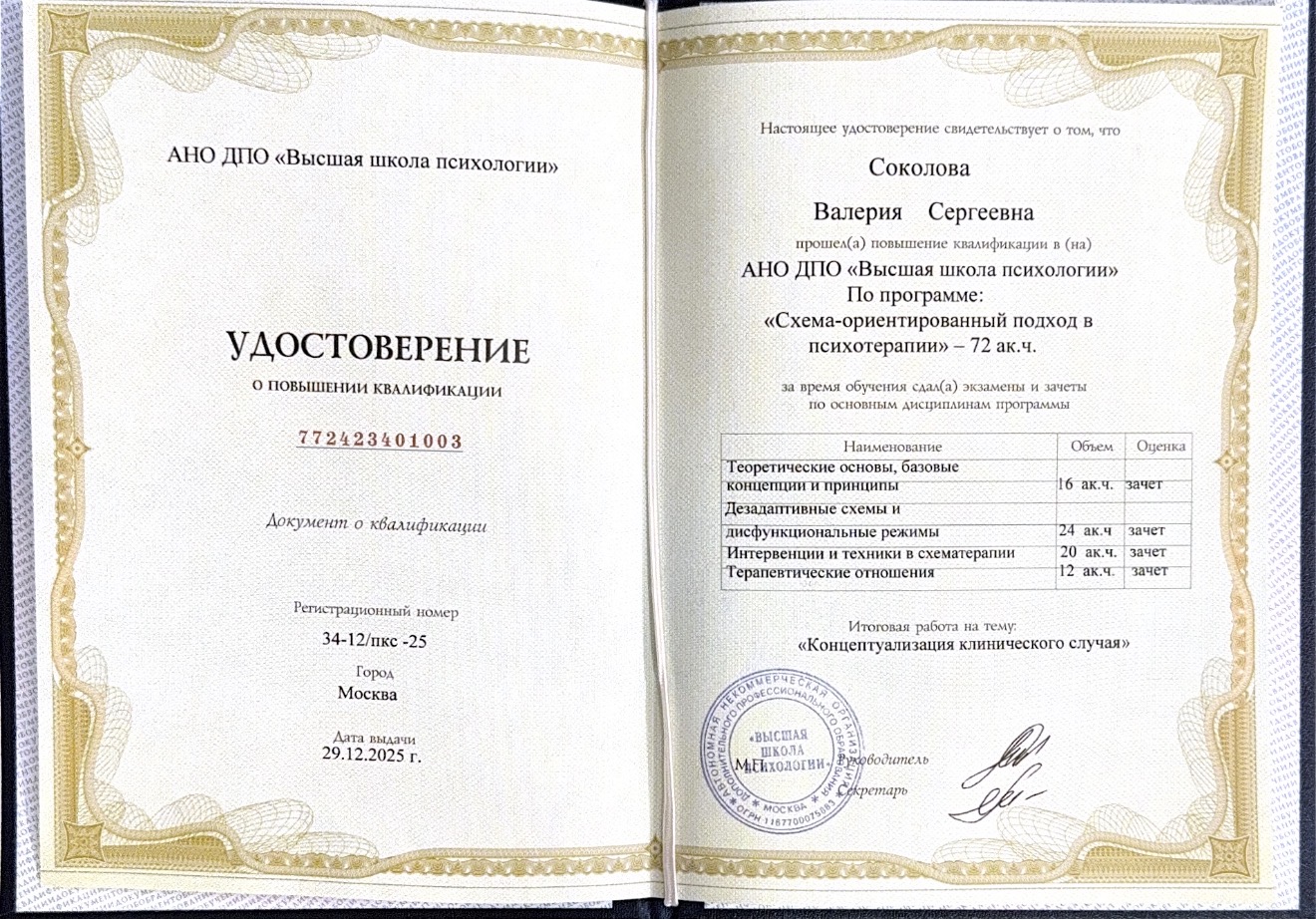 Схема-терапия - основной подход моей работы. Это научно-доказанный метод психотерапии, который относят к третьей волне когнитивно-поведенческой терапии. Что это значит? Что в работе я обращаю внимание на эмоции, чувства, переживания, прошлый опыт, на мысли и поведение. Этот подход позволяет максимально широко и при этом бережно увидеть клиентскую картину. Схема-терапия позволяет работать с глубиным травматическим опытом, помогает проживать полученный опыт и находить другие способы справляться.