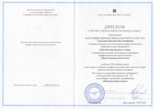 Подтверждённые дипломы по психологии:диплом о переподготовке (>1000 часов)