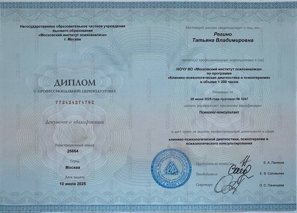 Приветствую вас! Я психолог-консультант, гипнотерапевт. В настоящее время обучаюсь в магистратуре и получаю квалификацию клинического психолога.